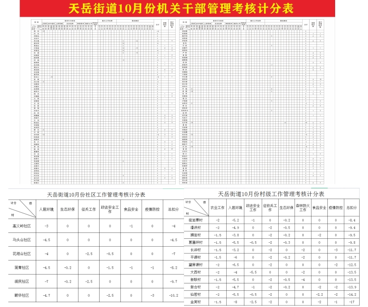 工作成果好不好,评比排队见真招。天岳街道一方面以“日常督导、月度讲评、季度考核”的常态化督察态势狠抓工作过程管理,另一方面对“创先争优”提出明确要求,在干部职工和村(社区)评先评优上严格遵循千分制考核结果,不做“老好人”、不谈“老资历”,一切以业绩说话、以能力服人,凡年度考核低于750分的干部职工/村居干部一律评为不合格/不称职等次,凡年度评比排分靠后的村(社区)直接按名额分配从后到前定为三类型(不知道要不要删除);在各线工作上大力倡导“主动对接、积极汇报、干出成效”的工作理念,督促中层干部定期与上级部门沟通业务、汇报进度,全力以赴各项工作任务,在每个阶段工作中勇争前三,确保在年终评先评优上交出满意答卷。