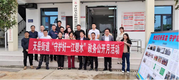 为展示天岳街道落实习近平总书记提出的“守护好一江碧水”殷殷嘱托的工作成果,丰富政民互动形式,收集听取群众对政府工作的意见建议。4月14日,天岳街道通过“观摩+座谈”的方式,开展“守护好一江碧水”政务公开月活动,县政协农业农村和环资委、县乡村振兴局、县行政审批局、县汨江办等单位相关负责人,部分县人大代表、县政协委员、群众代表,以及天岳街道环境整治办全体人员和相关村厕改专干等40余人参加。