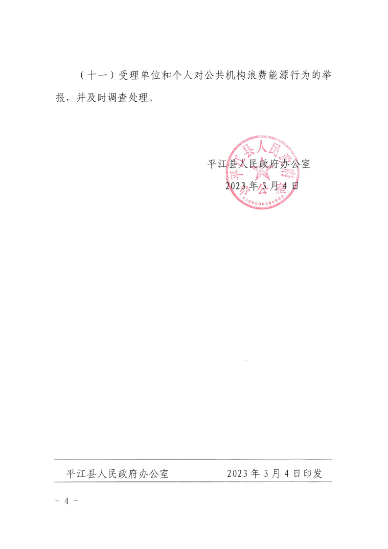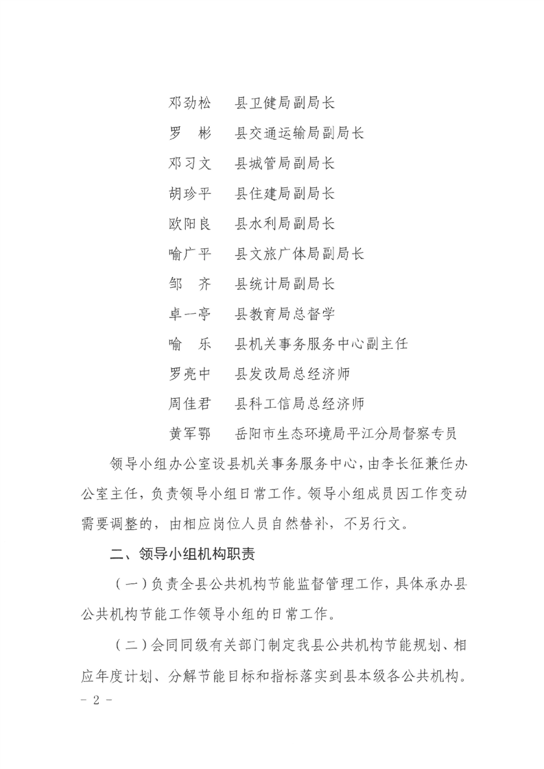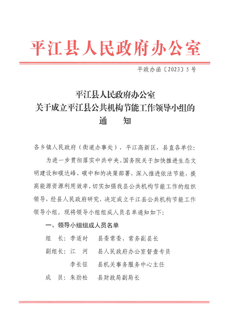 关于成立平江县公共机构节能工作领导小组的通知