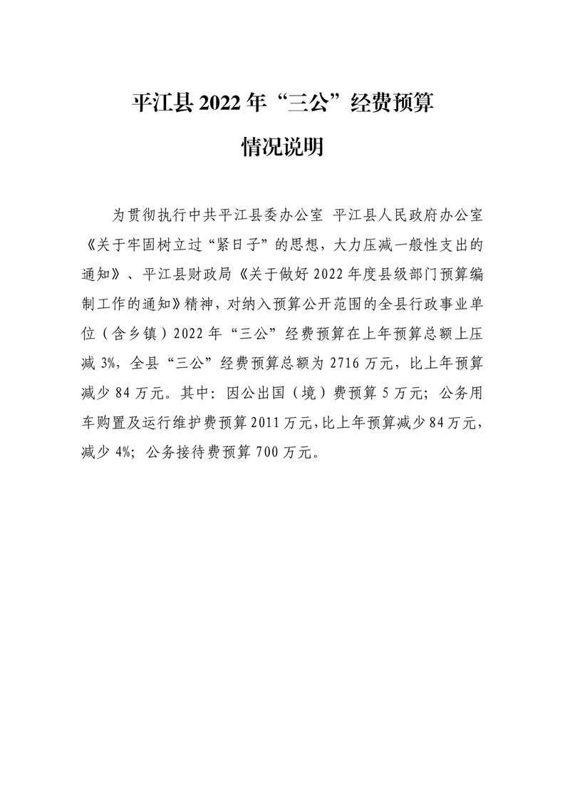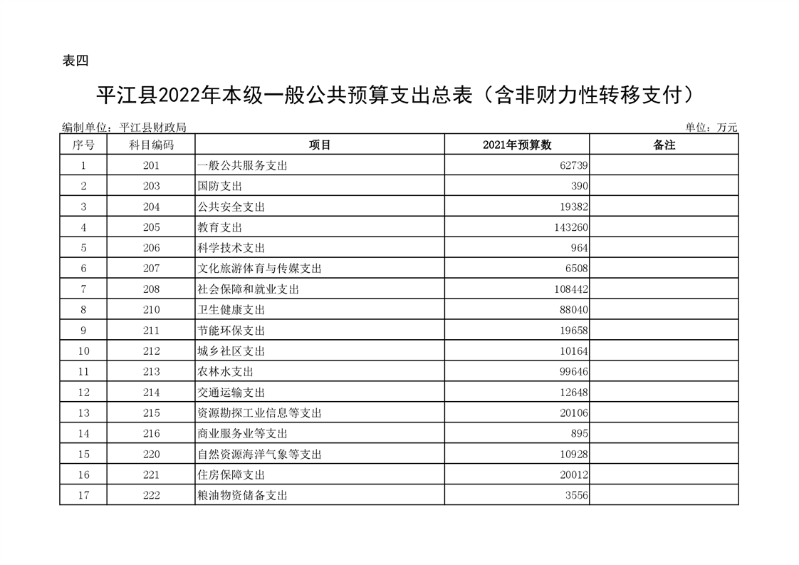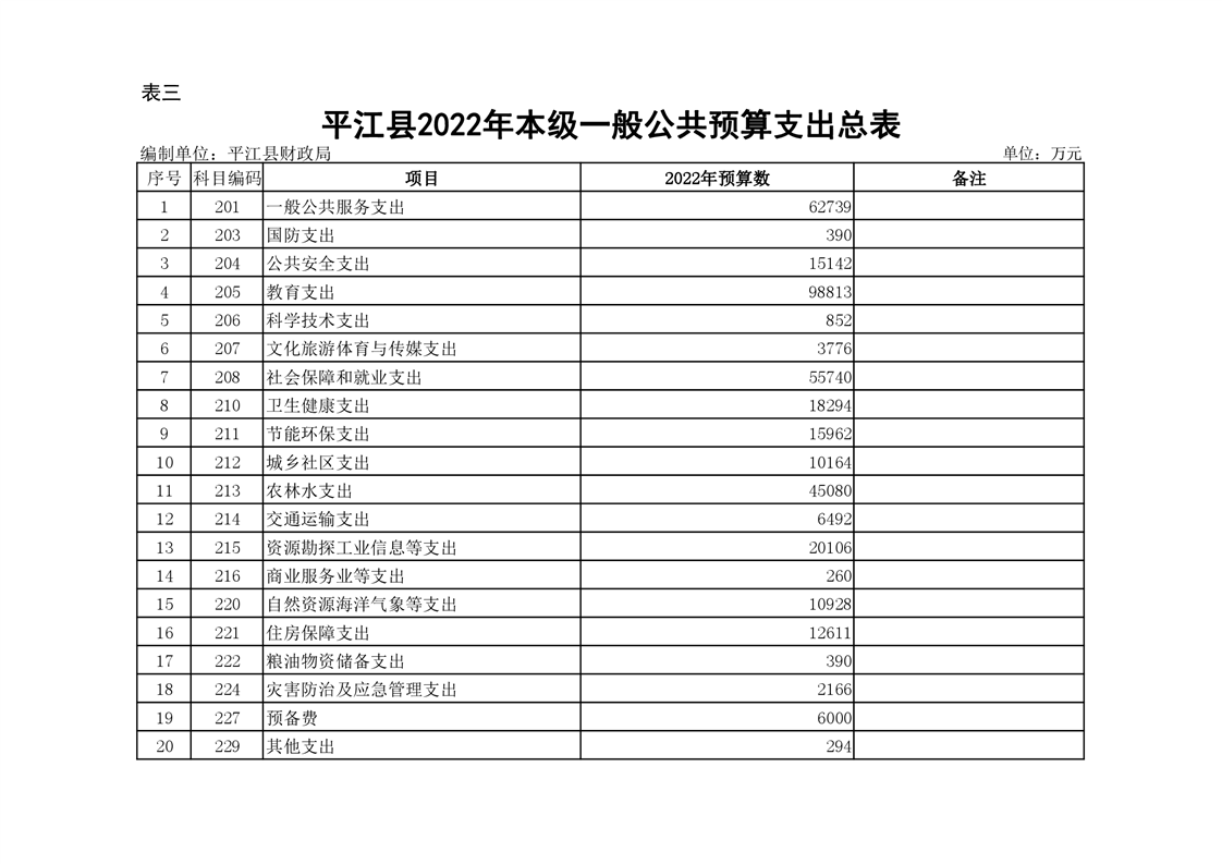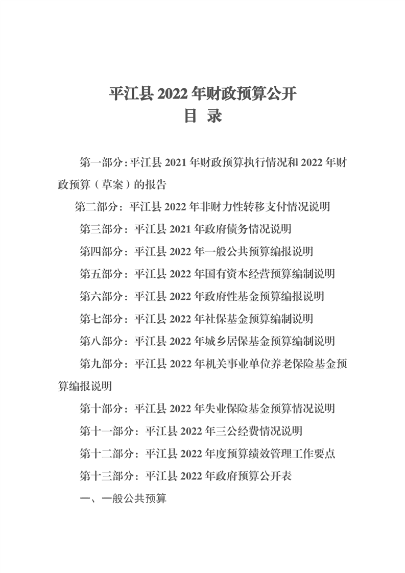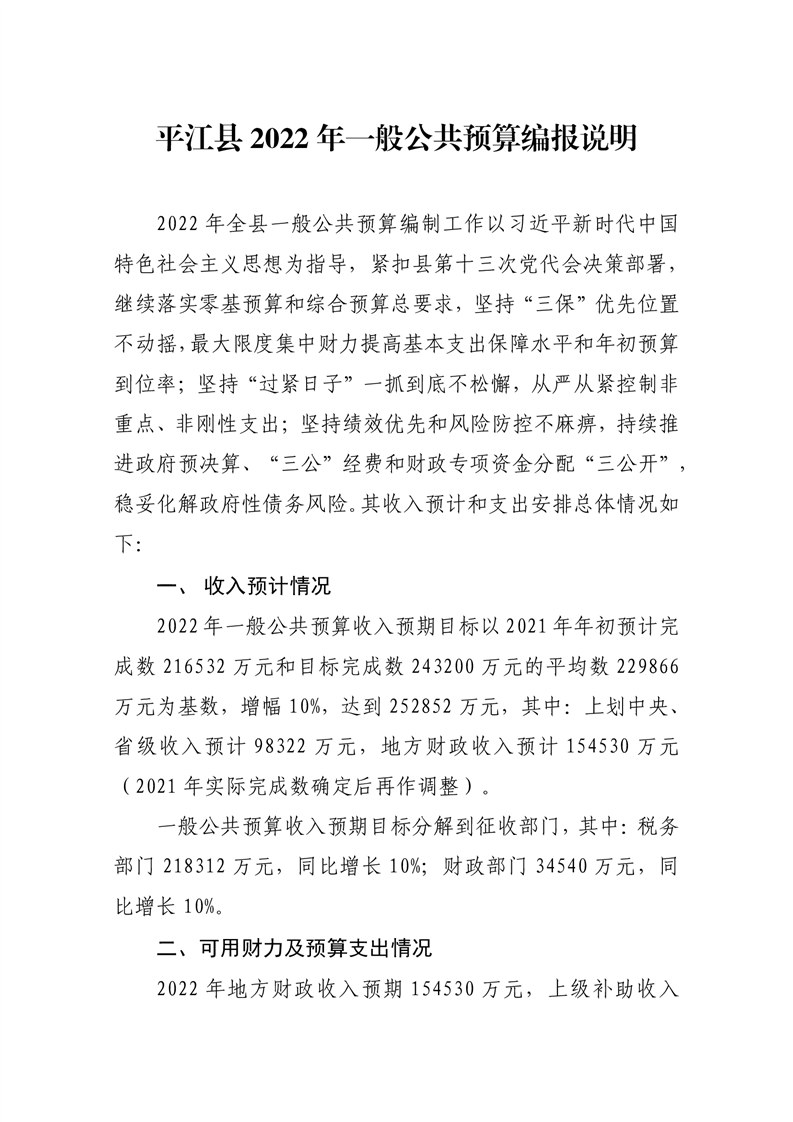 平江县2022年财政预算公开公示