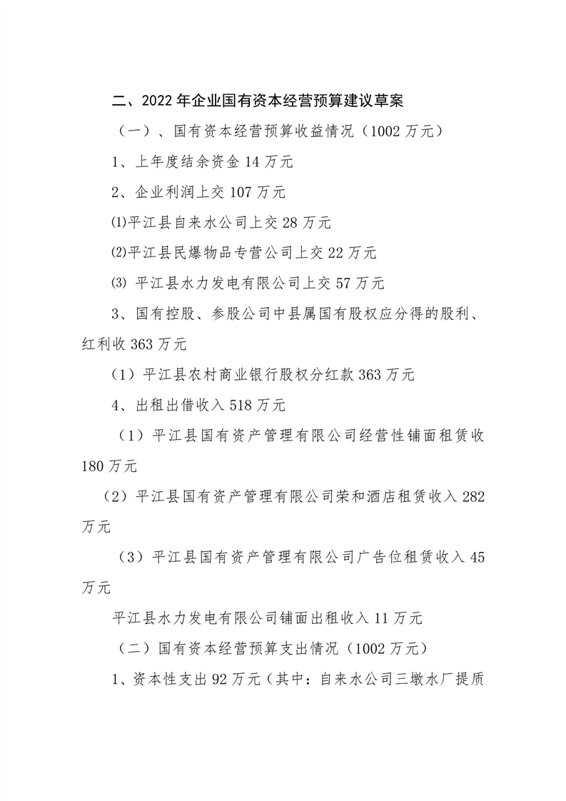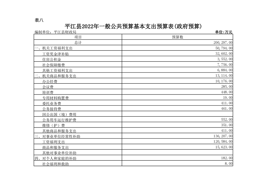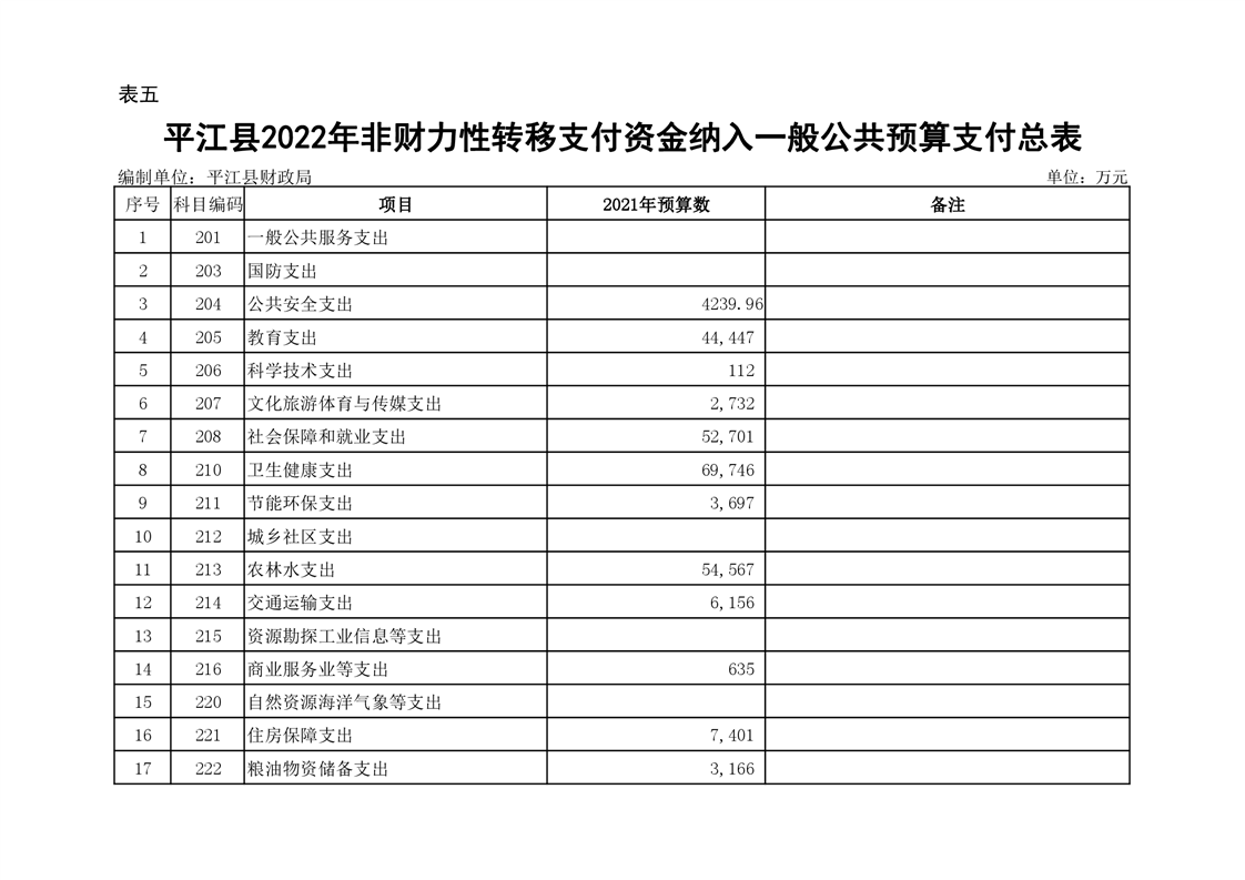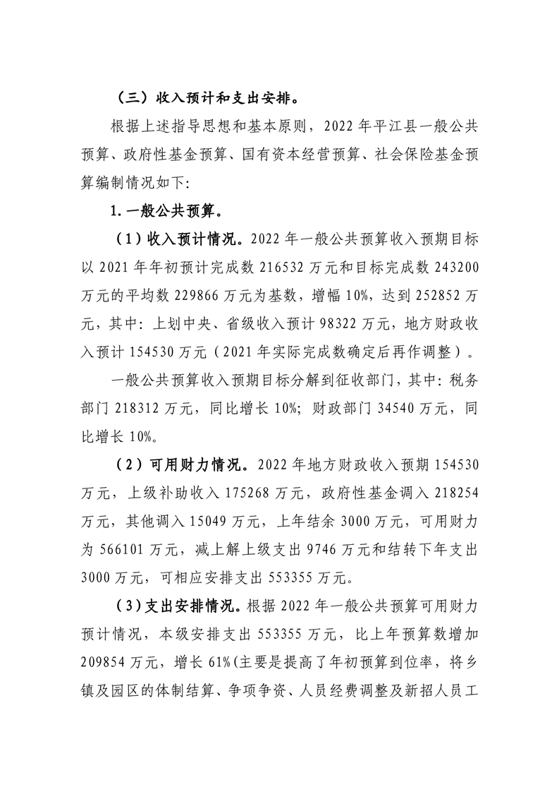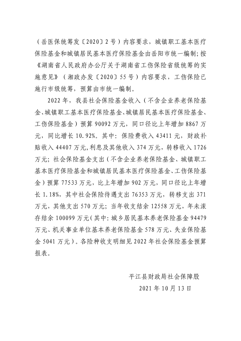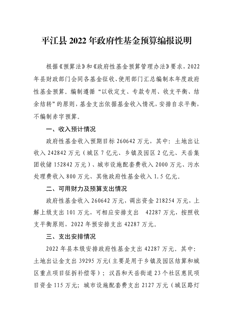 平江县2022年财政预算公开公示