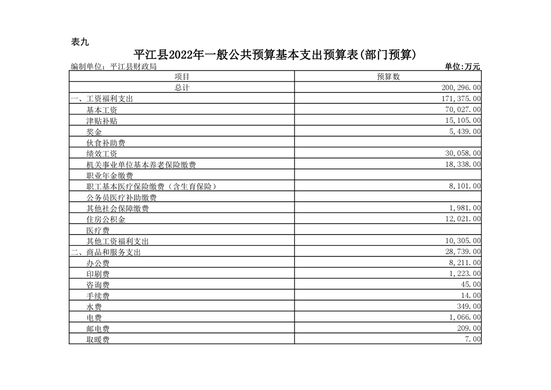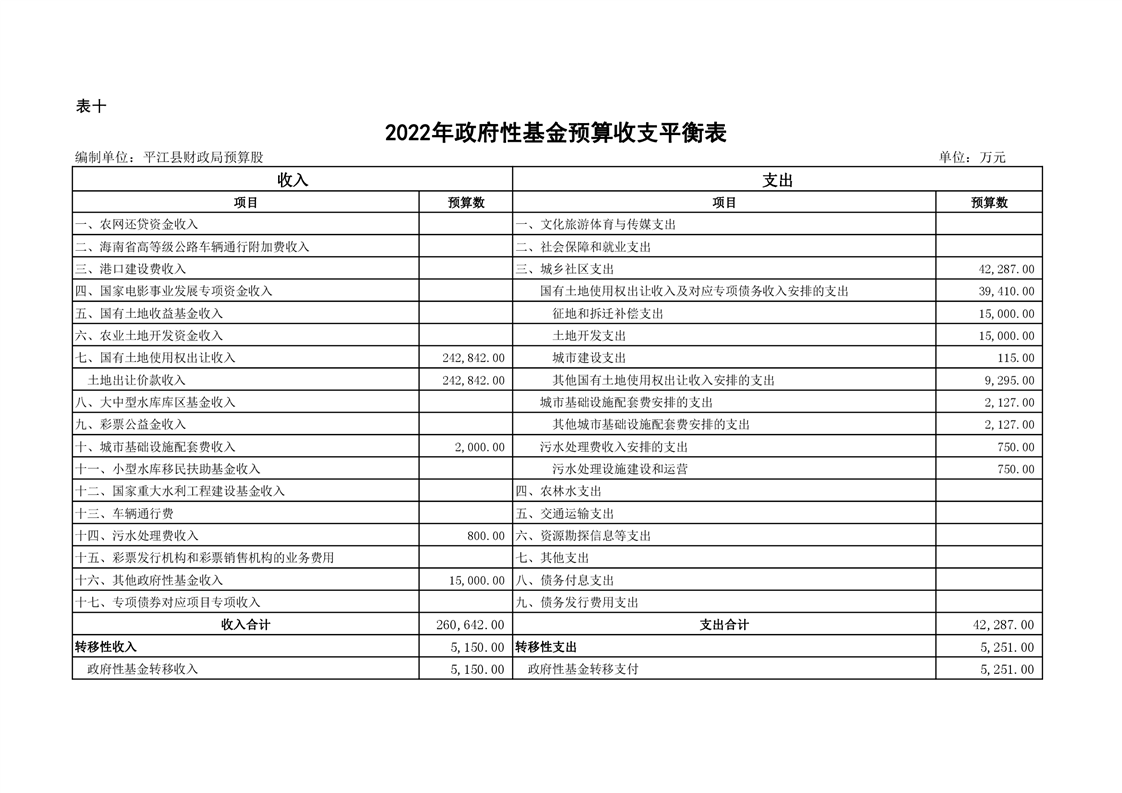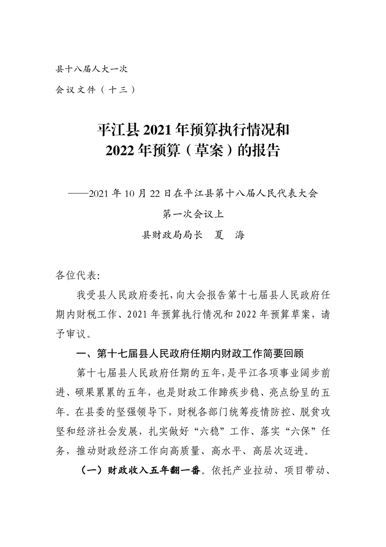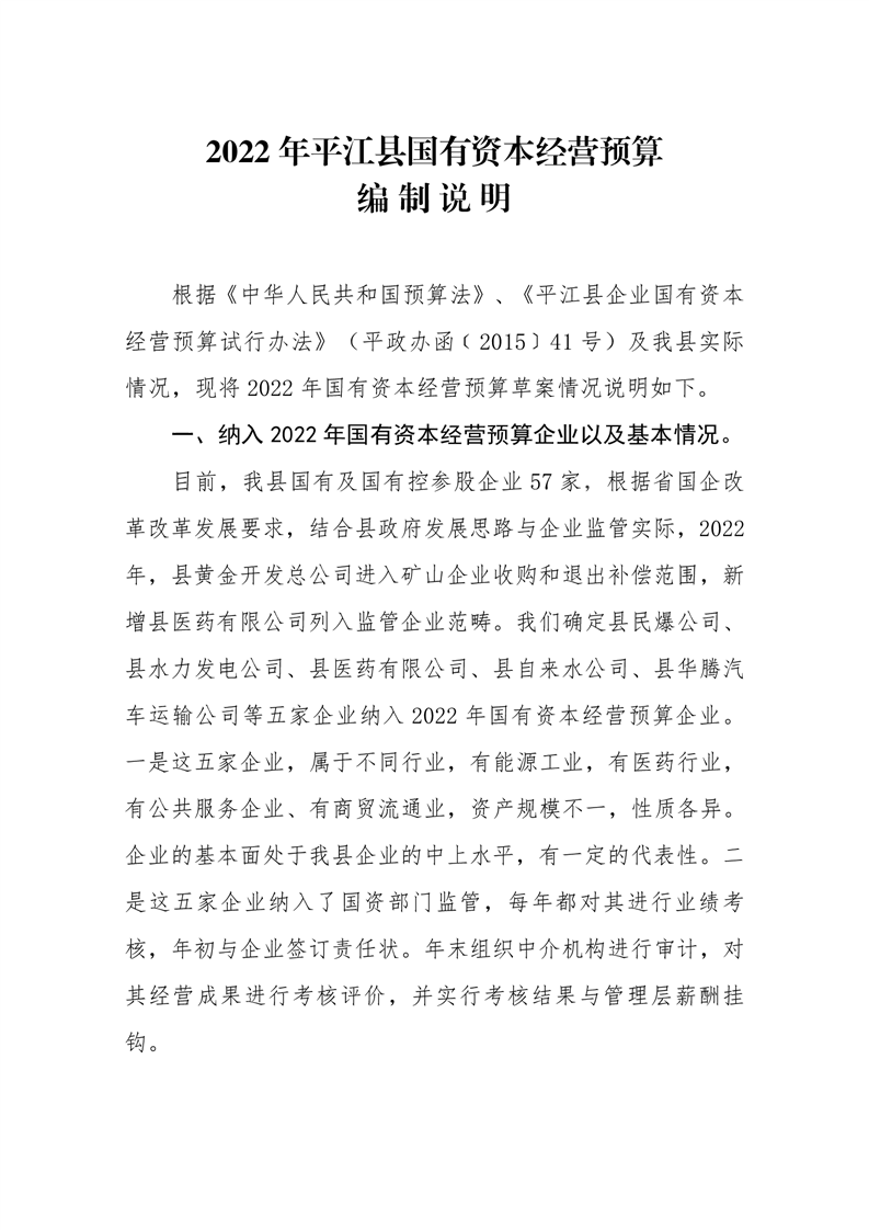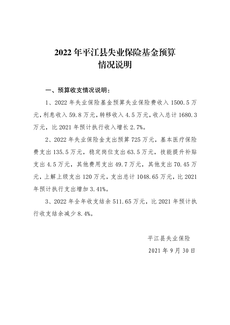 平江县2022年财政预算公开公示