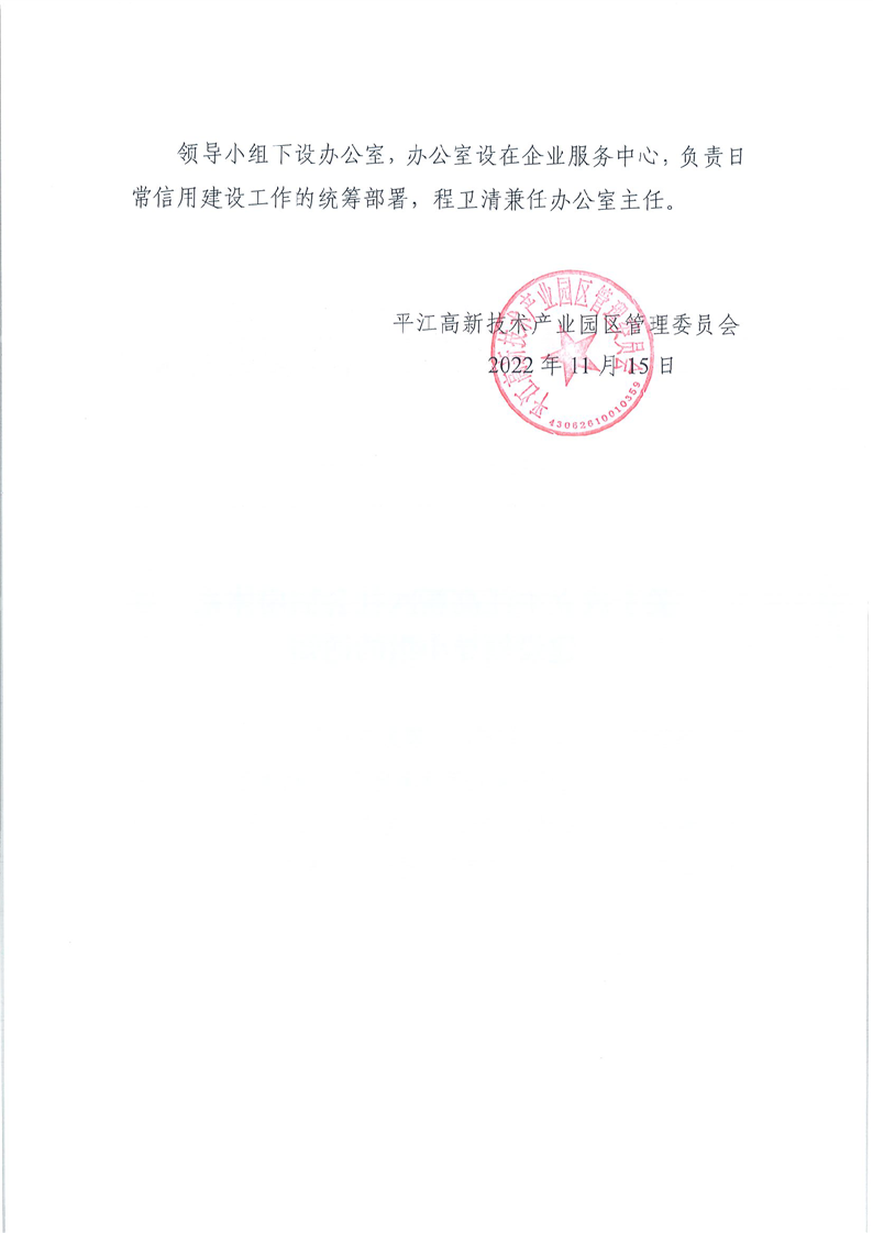 关于平江高新区成立社会信用体系建设领导小组的通知