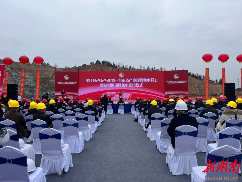 今天,平江县举行2025年第一批重点产业项目集中开工暨新引进项目集中签约仪式。此次签约及开工的项目共40个,涵盖休闲食品、云母制品、装备制造、新材料、仓储物流等多个领域,总投资近100亿元。其中,湖南新金刚工程机械四期投资50.8亿元,实现50亿元级项目“零”的突破;亿元以上项目占比达20%。