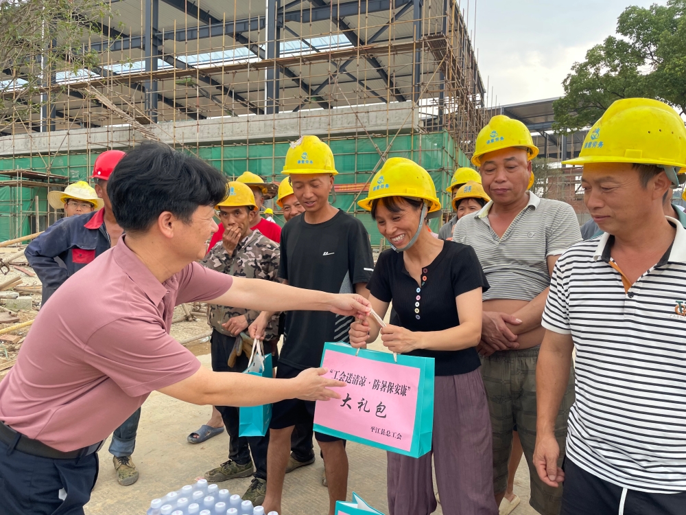 “这么热的天,你们还惦记着我们,送来这么多东西,真是太暖心了!”一位年长的环卫工人接过沉甸甸的慰问物资时,眼角带着笑意,激动地说道。8月1日,平江县总工会联合平江高新区工会联合会开展“夏送清凉”慰问活动,为高温下坚守岗位的环卫工人、铁金刚工地工人送去盛夏里的清凉与关怀。