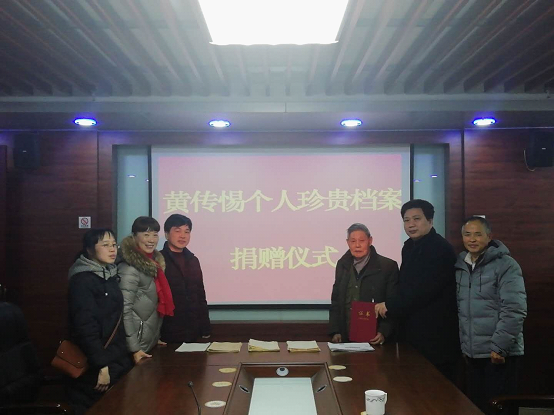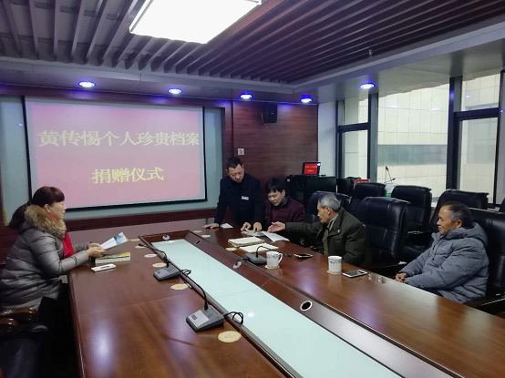 1月14日,平江县档案局(馆)举行黄传惕个人珍贵档案捐赠仪式。捐赠者黄传惕老先生、县档案局(馆)党组书记、局(馆)长段曙光,党组成员方赤忠、刘慧平,周令钊美术馆馆长童毅力,以及部分陪同人员和档案馆工作人员参加了此次捐赠仪式。