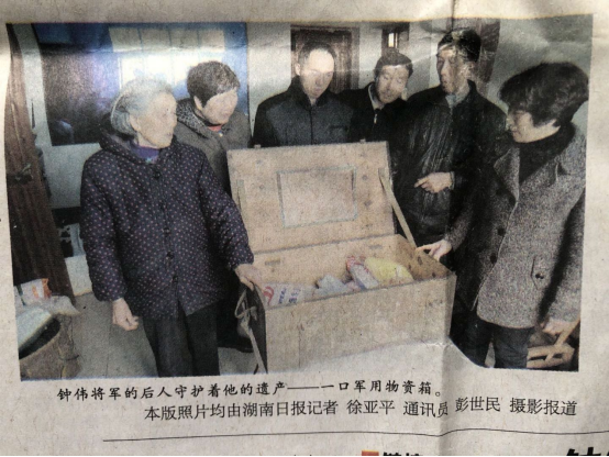 钟伟将军,一身正气,两袖清风。他退过组织上安排的飞机票;极少使用公车;也从不维修故居;更没给子孙留任何钱财。他唯一的遗产是他用过的一口锈迹斑斑军用物资箱。