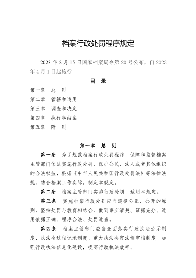 2023年4月1日开始施行!国家档案局令 第20号《档案行政处罚程序规定》