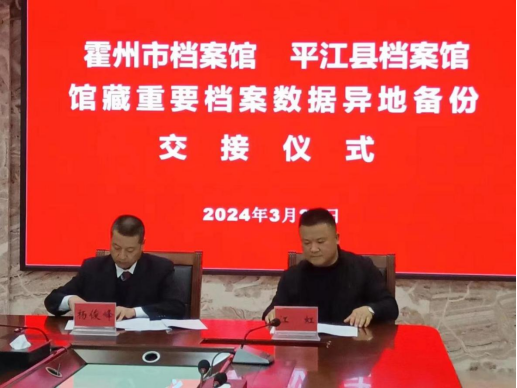 3月22日,县档案馆与山西省霍州市档案馆签订档案合作交流协议,并接受了霍州市国企退休人员人事档案、疫情防控档案等一批重要档案数据备份。