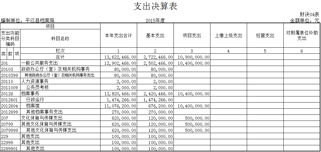 1,全年收入合计为13822466元,其中行政运行1476266元,档案馆11076200元,其他档案事务支出270000元,基他文化体育与传媒支出620000元,其他政府办公厅80000元,其他支出100000元.