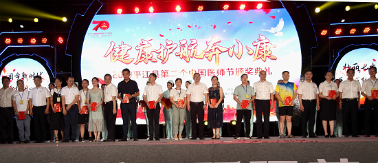 为大力弘扬“敬佑生命、救死扶伤、甘于奉献、大爱无疆”的崇高职业精神,表彰平江县优秀医务工作者,树立典型。8月18日晚,由县卫健局主办、县第五人民医院承办的“健康护航奔小康”2019平江县第二个中国医师节颁奖典礼在南江镇举行,副县长潘如意,县政府办副主任王永祥,卫健局局长赵取平,南江镇党委书记李三军,镇长李凌志,卫健局副局长胡顺怡、叶然龙、周福泉、汪小蛟、李中元、邓劲松,派驻纪检书记江治出席活动,卫健系统各单位代表共1000余人参加活动。
