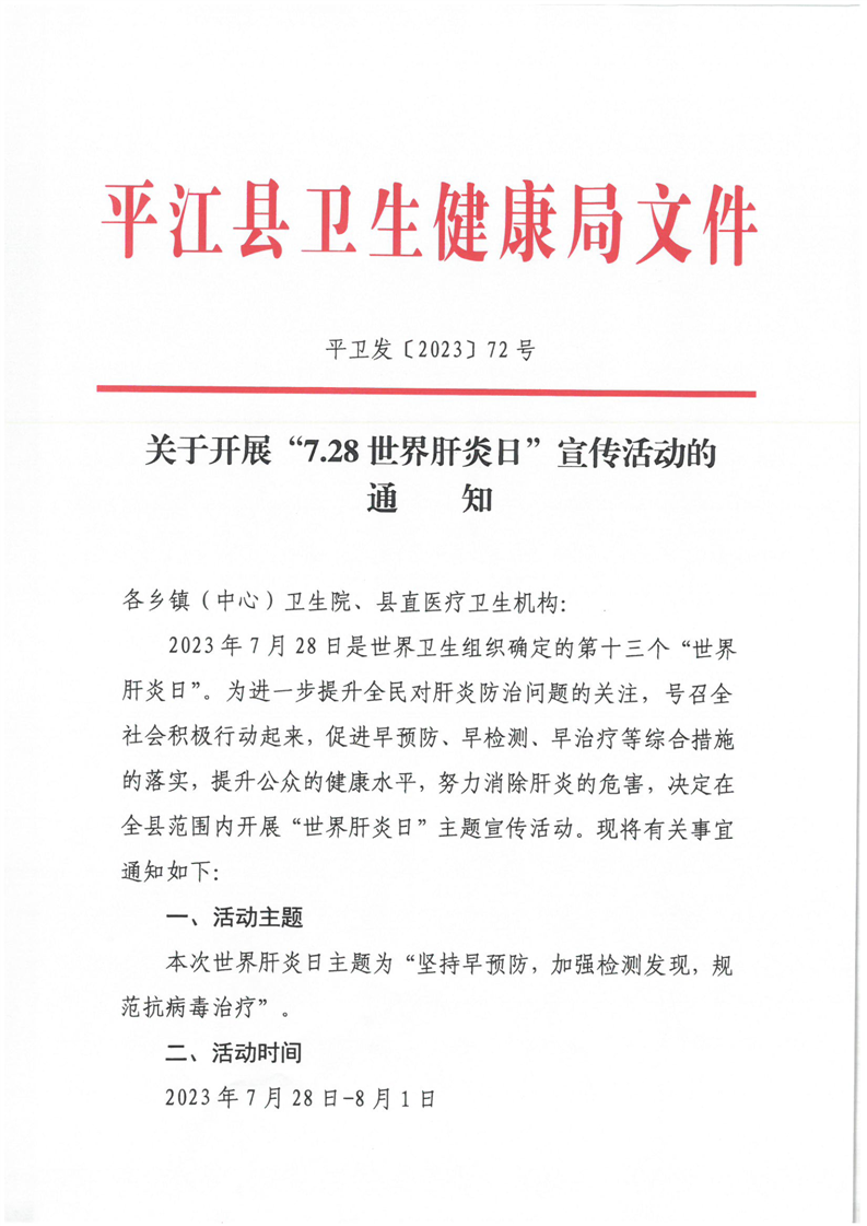 关于开展“7.28世界肝炎日”宣传活动的通知