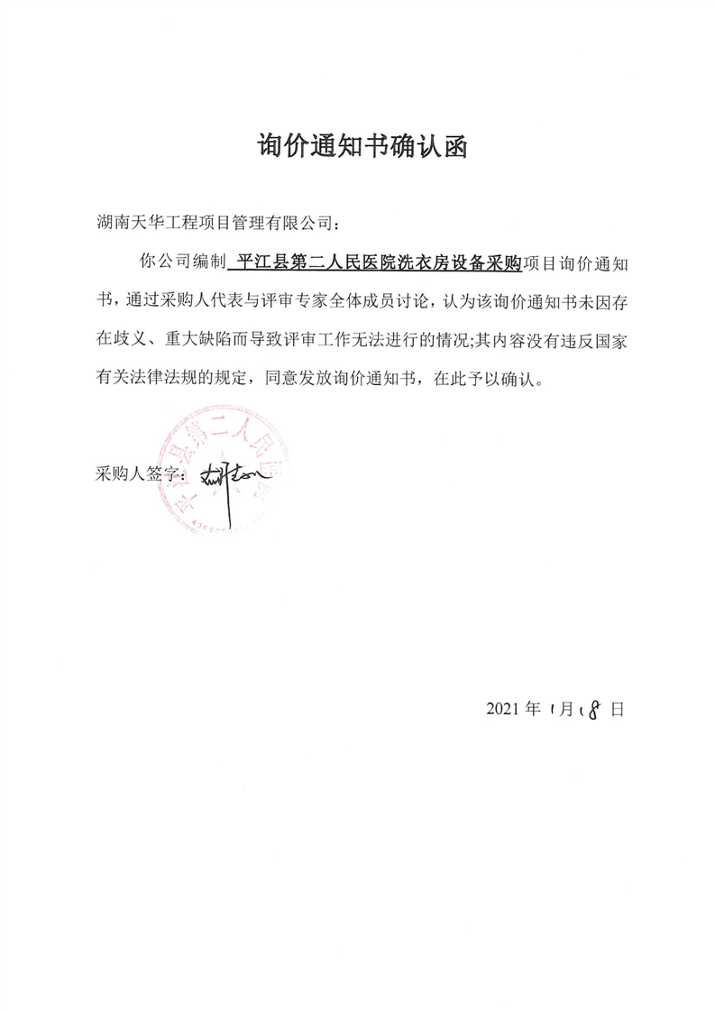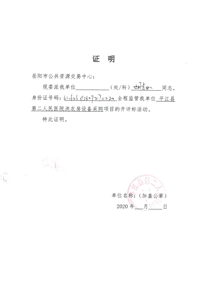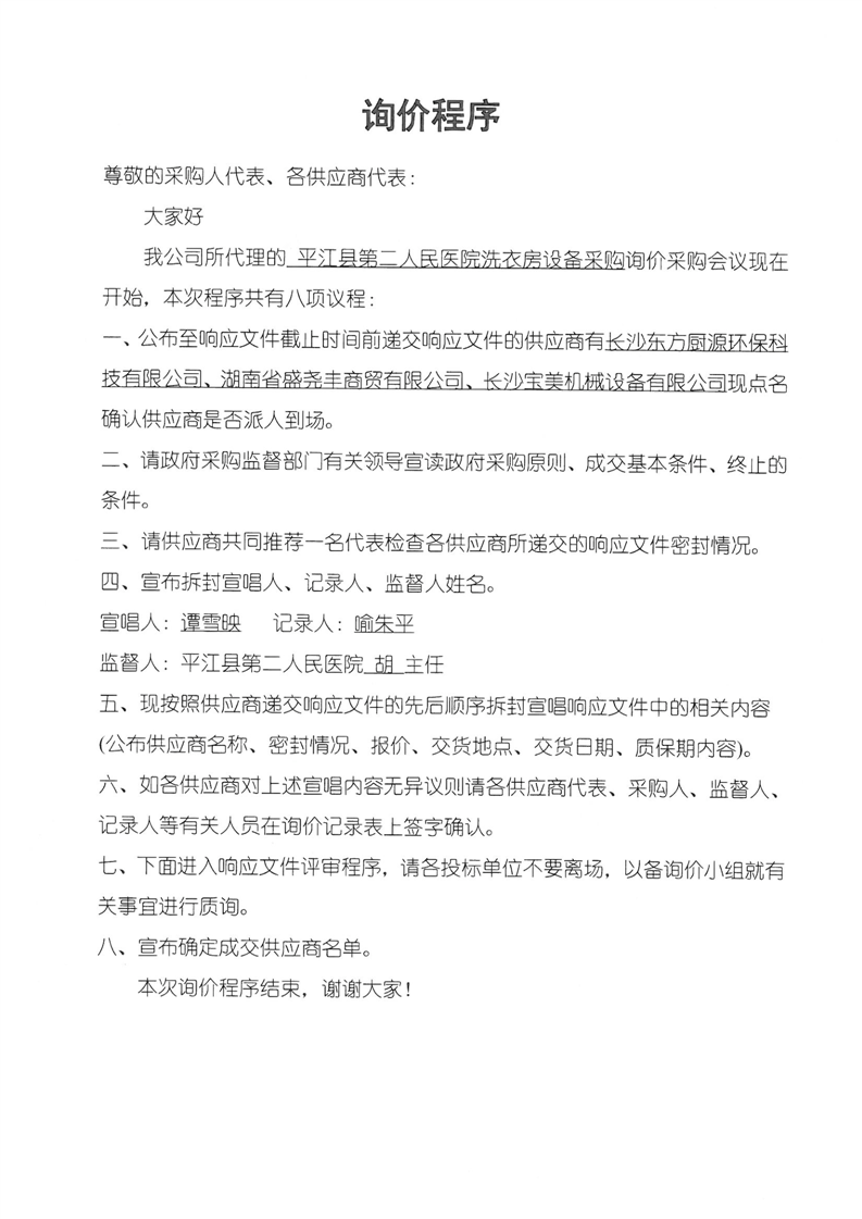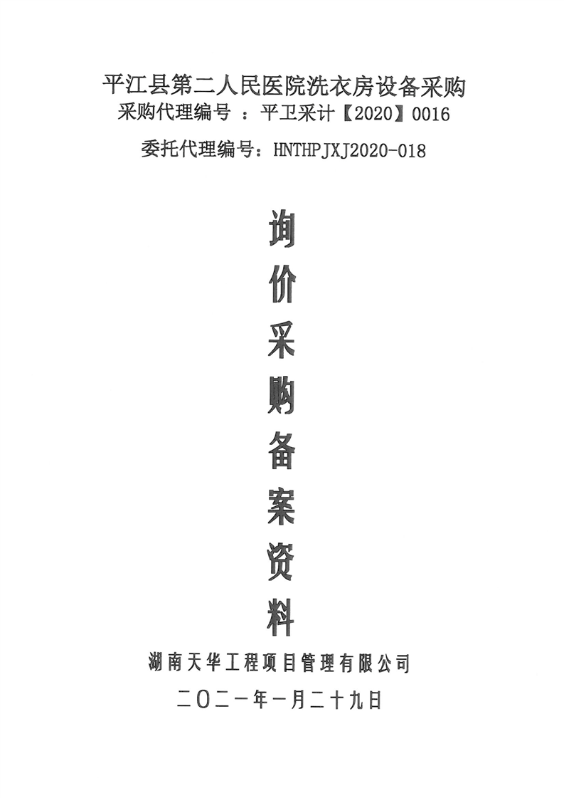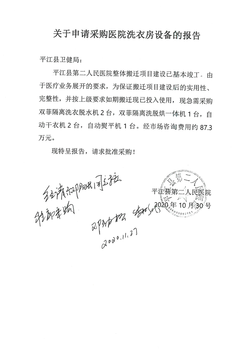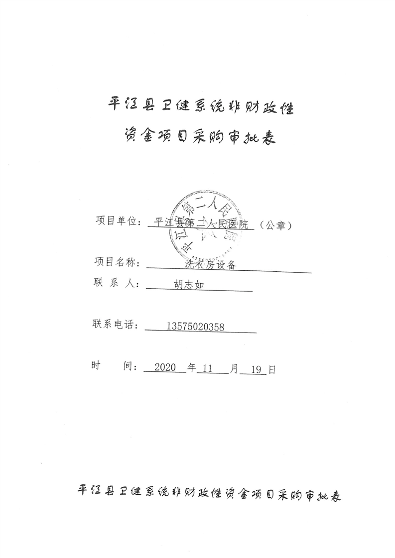 平江县第二人民医院洗衣房设备采购项目公示资料