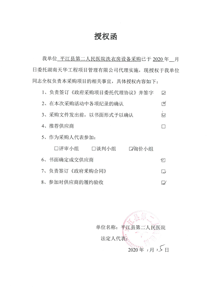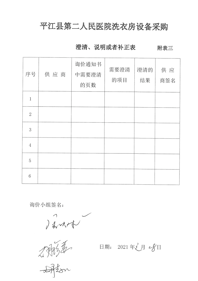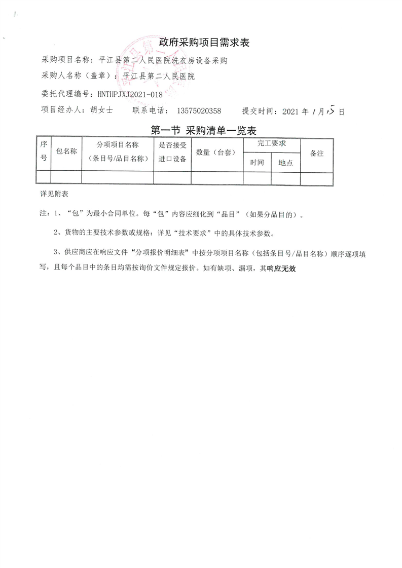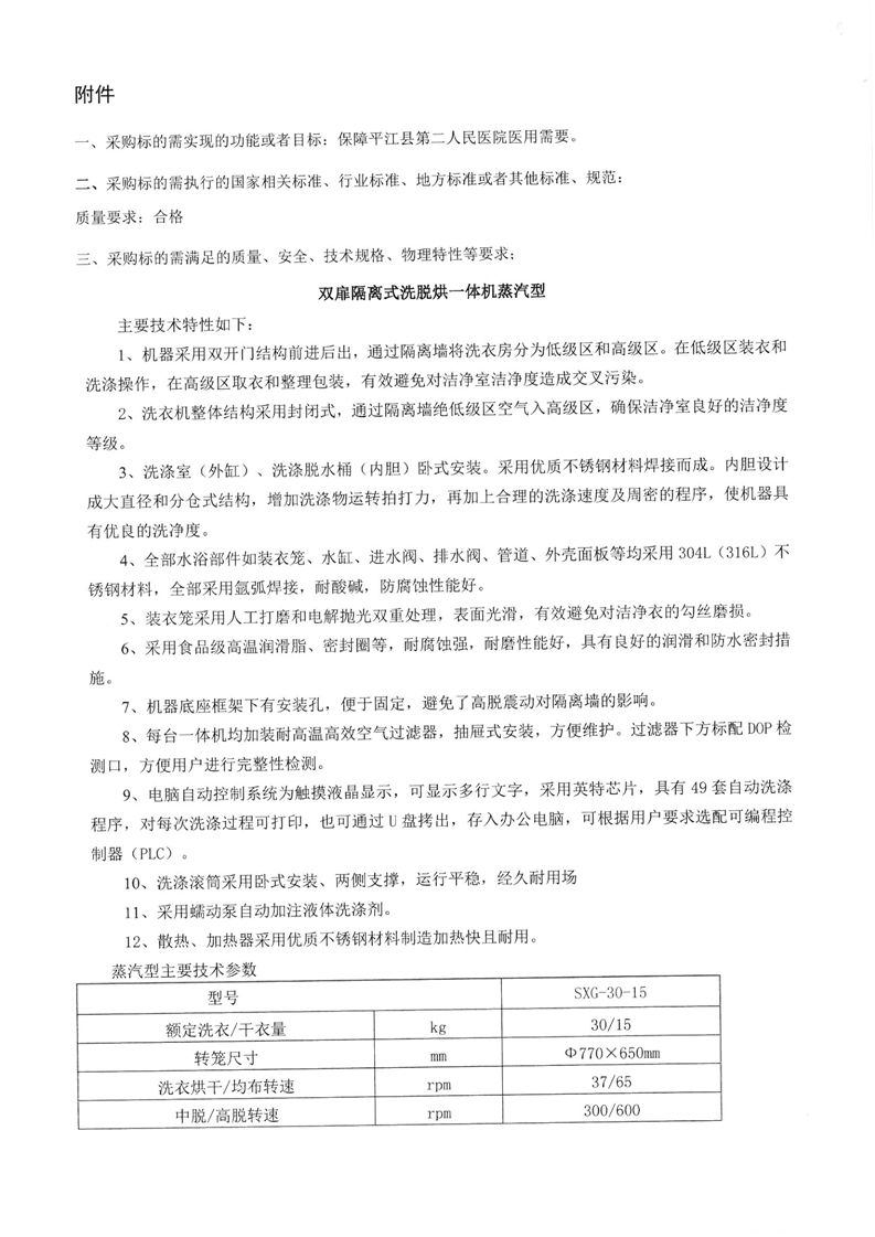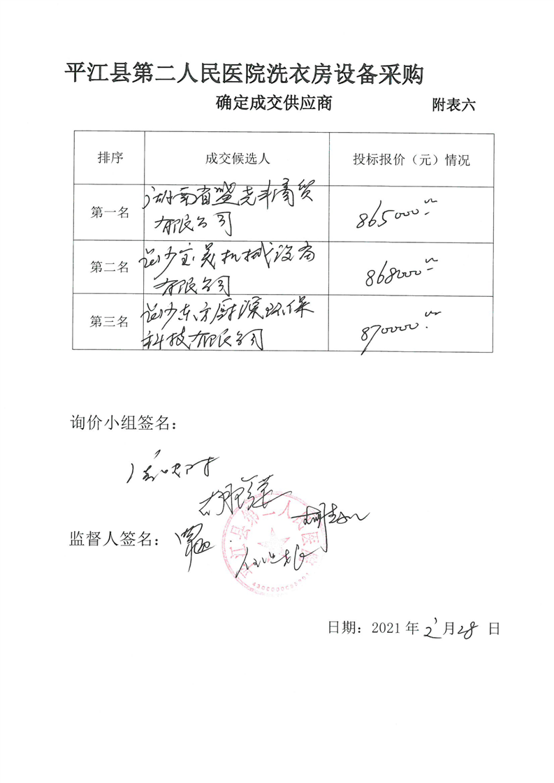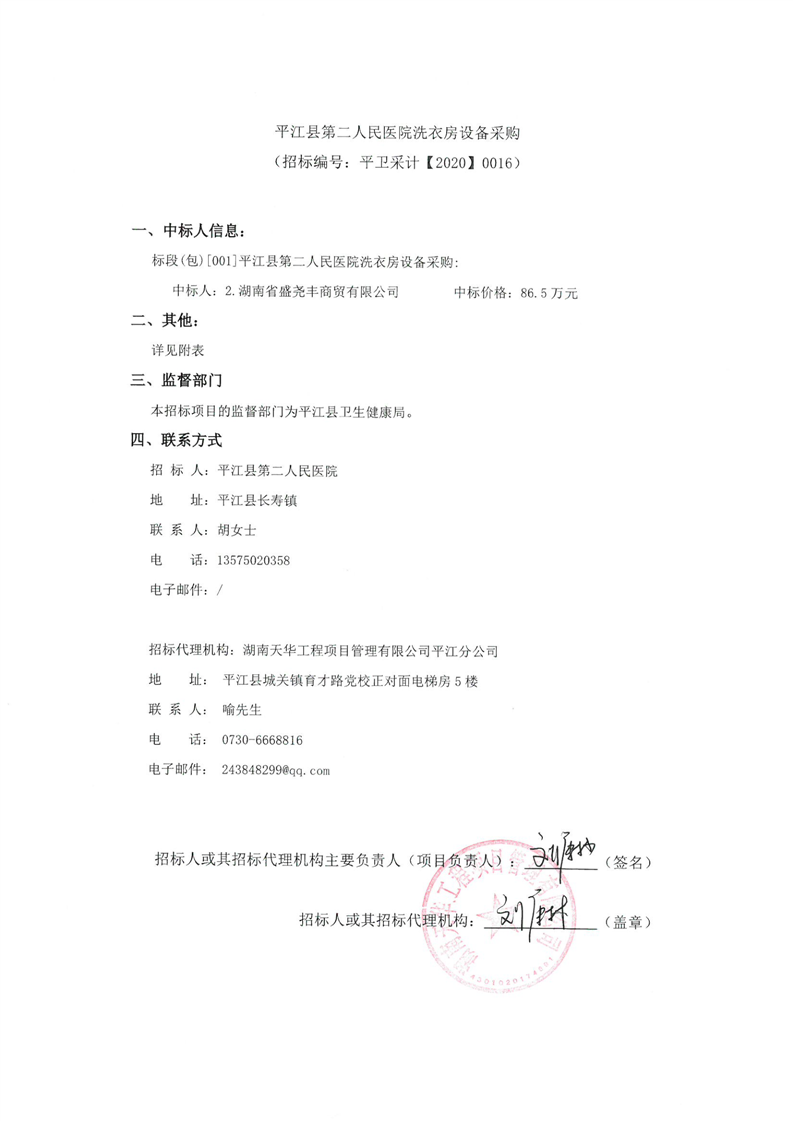 平江县第二人民医院洗衣房设备采购项目公示资料