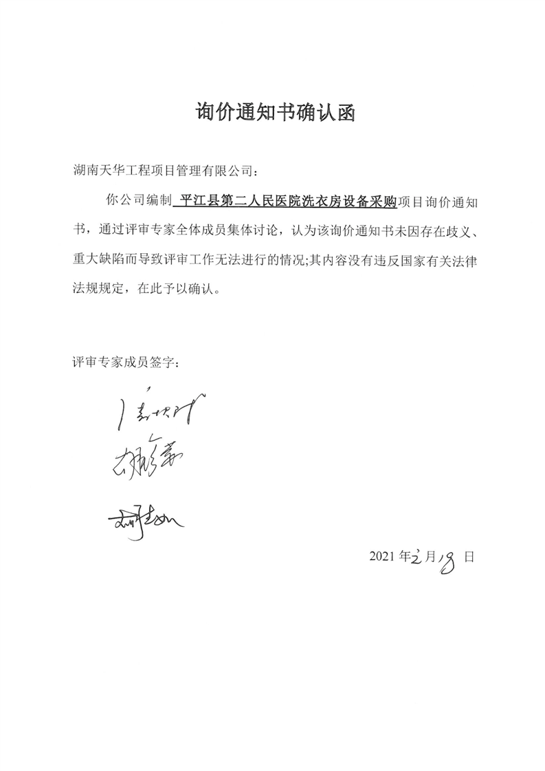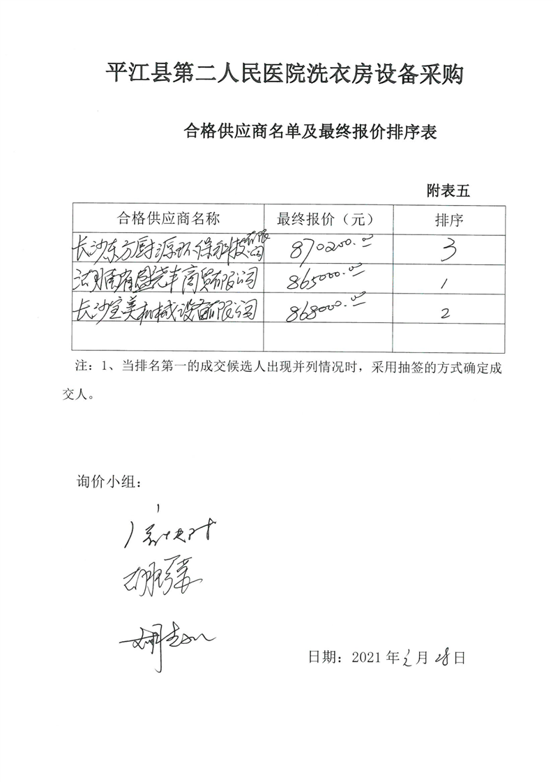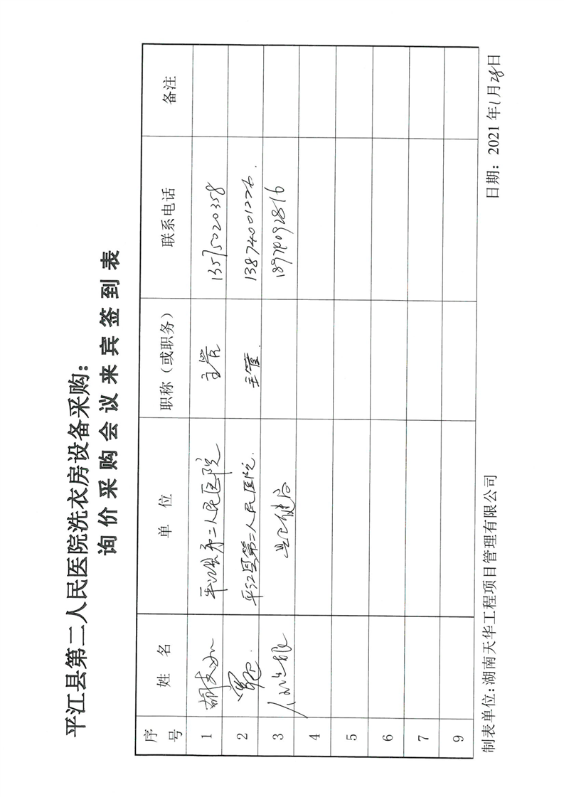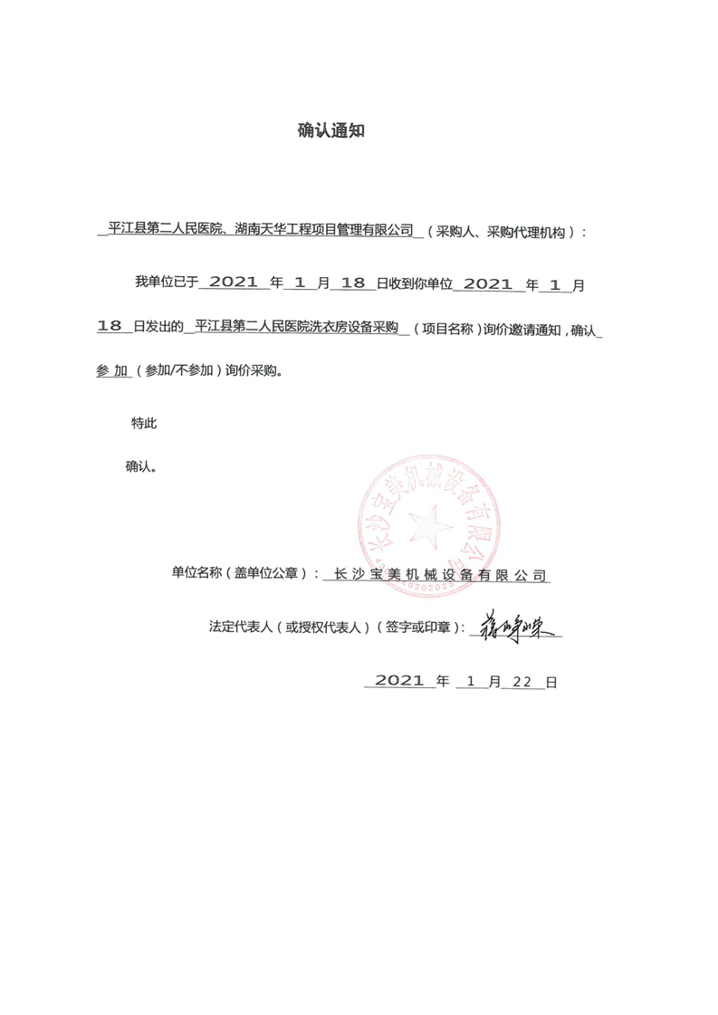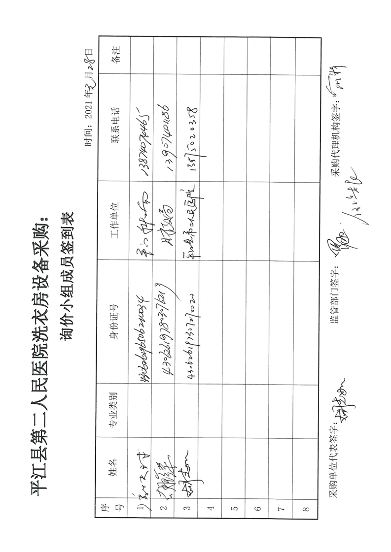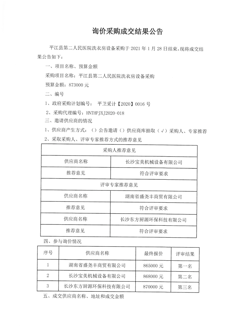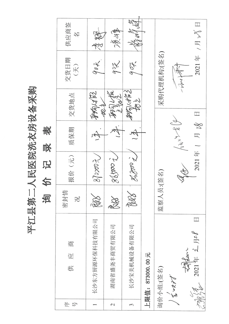 平江县第二人民医院洗衣房设备采购项目公示资料