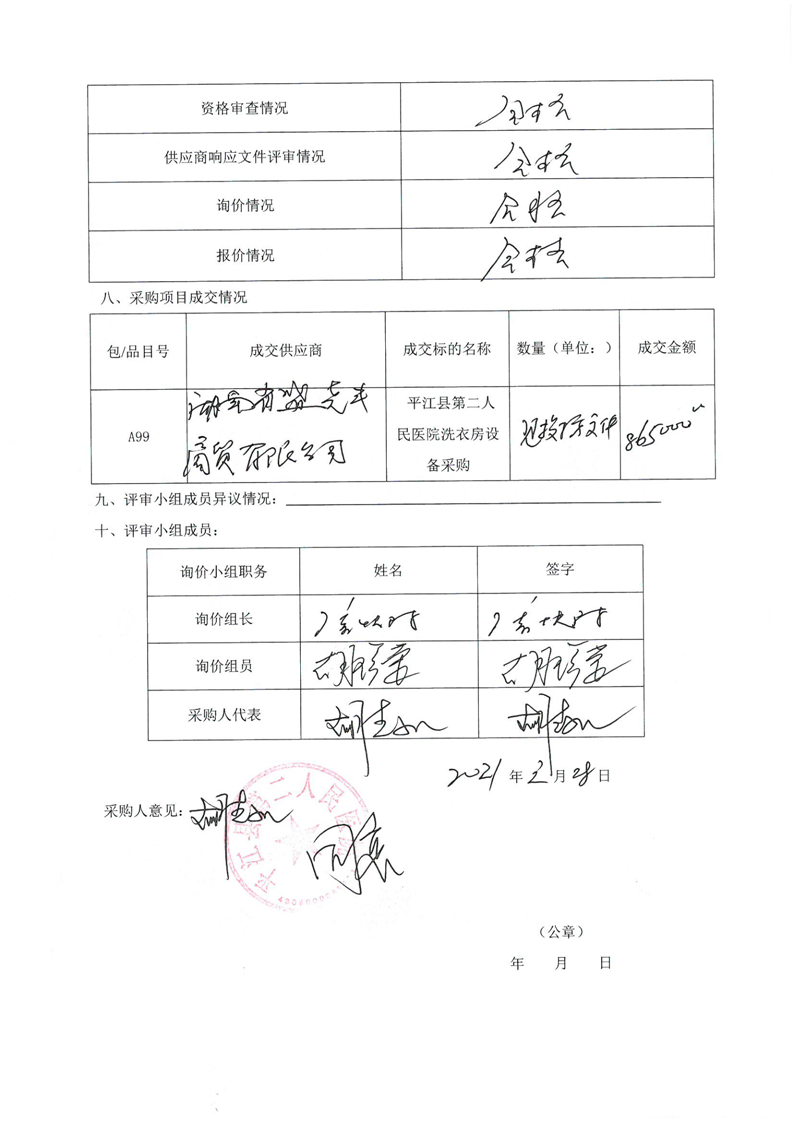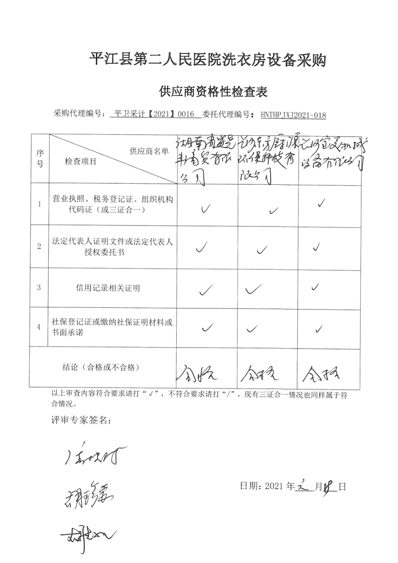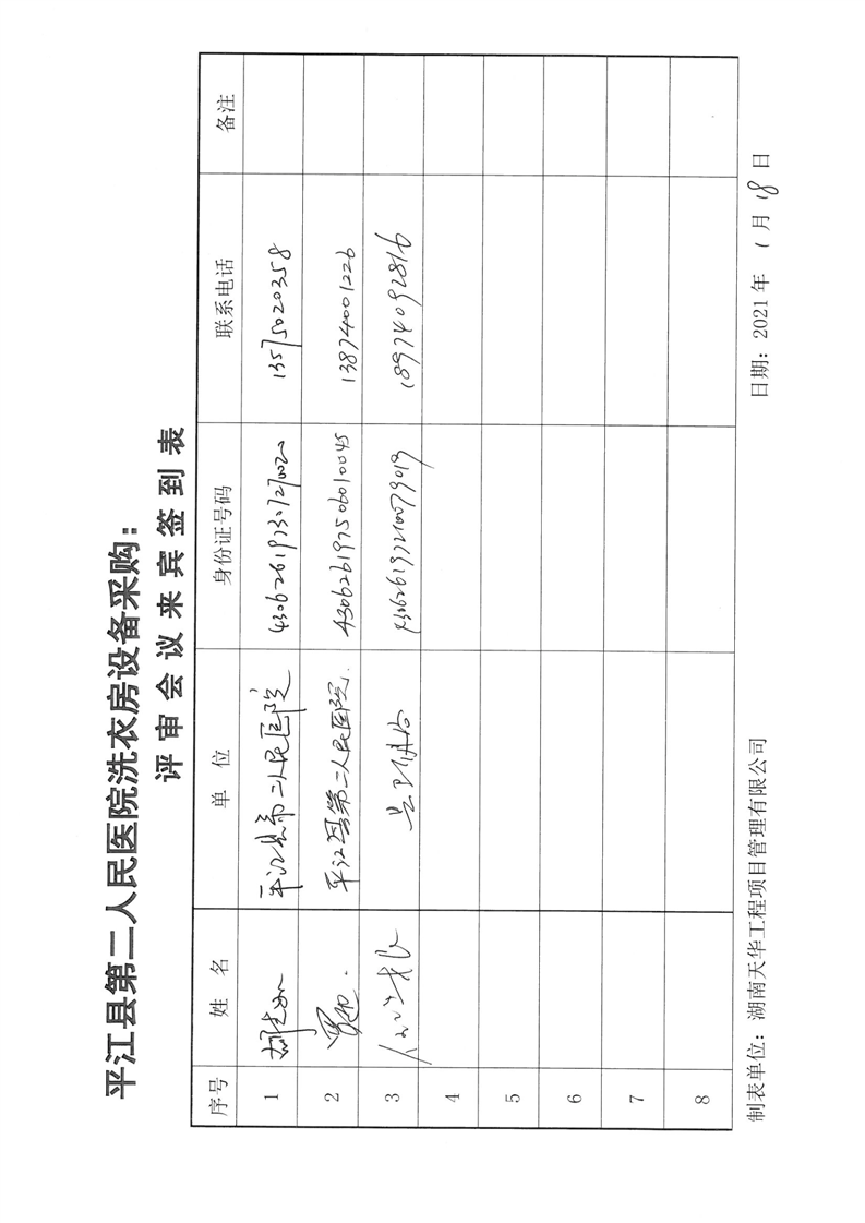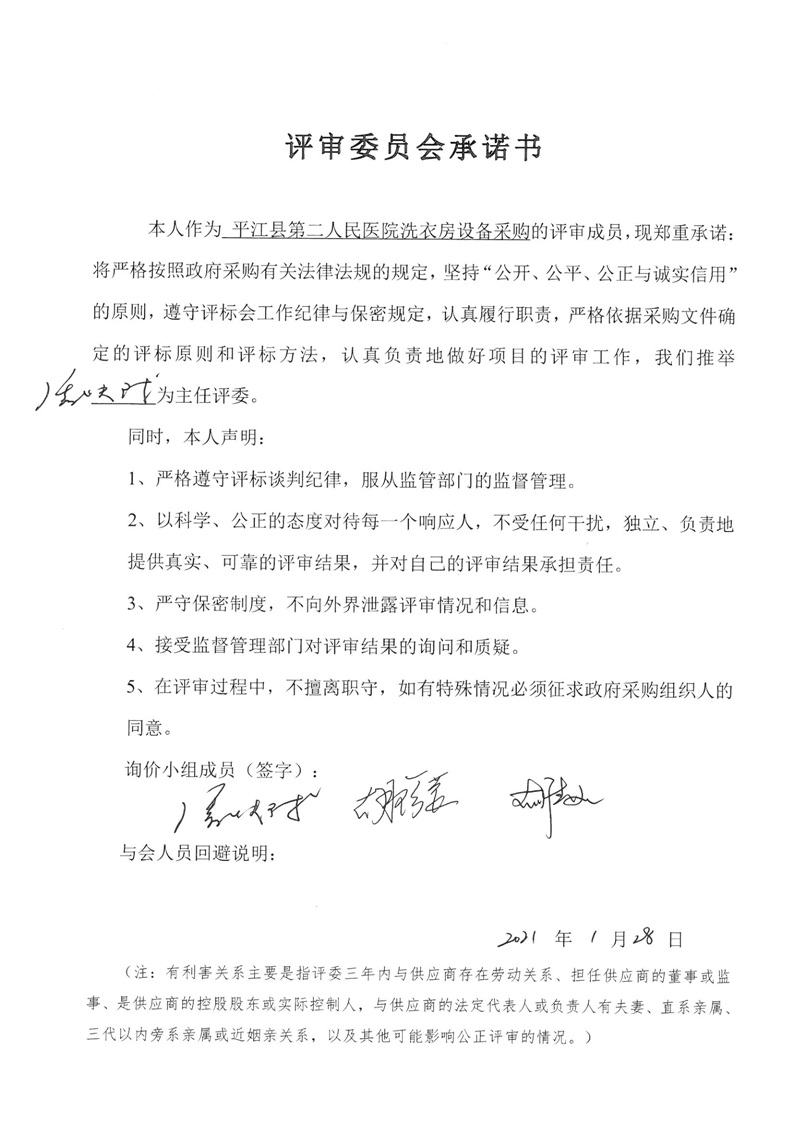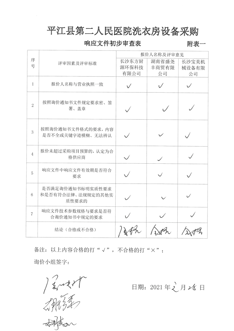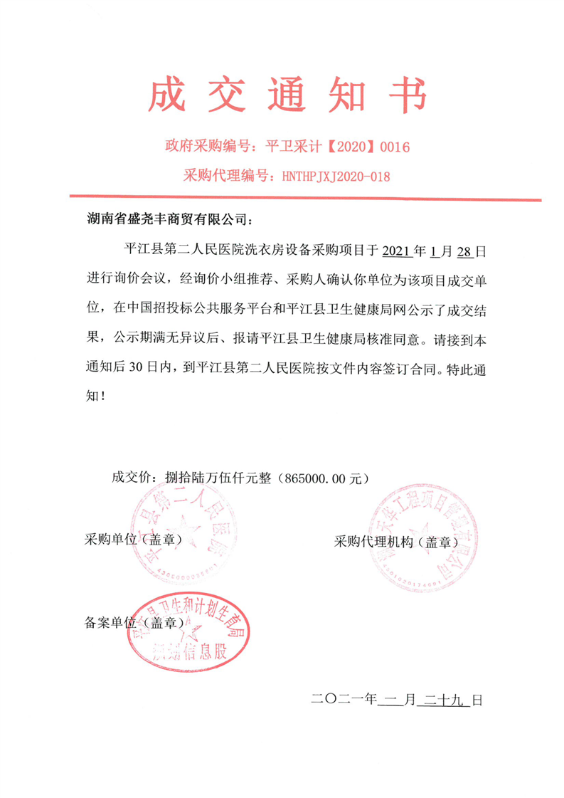 平江县第二人民医院洗衣房设备采购项目公示资料