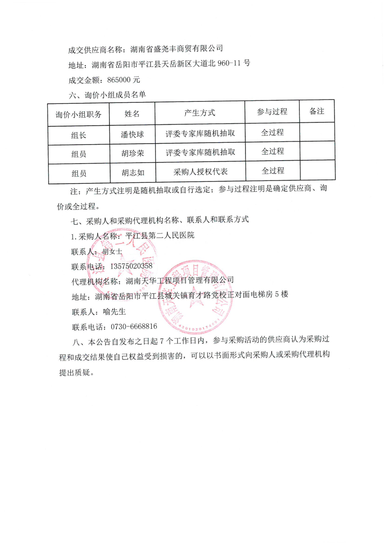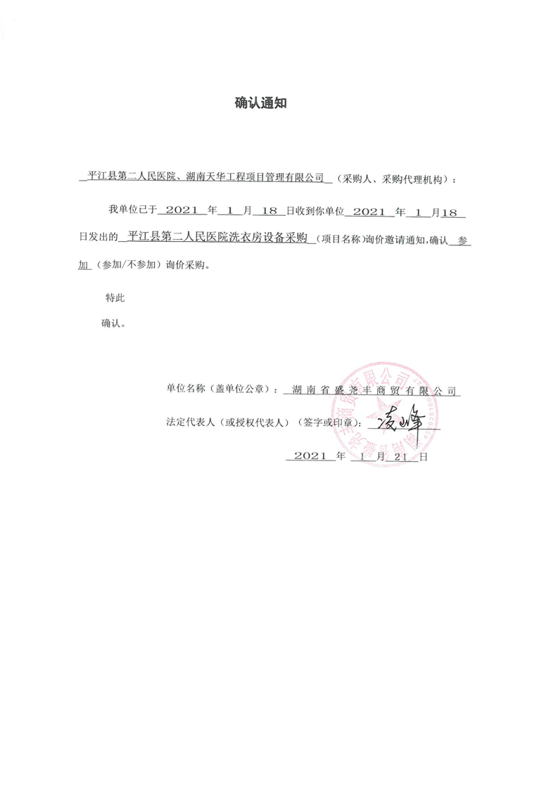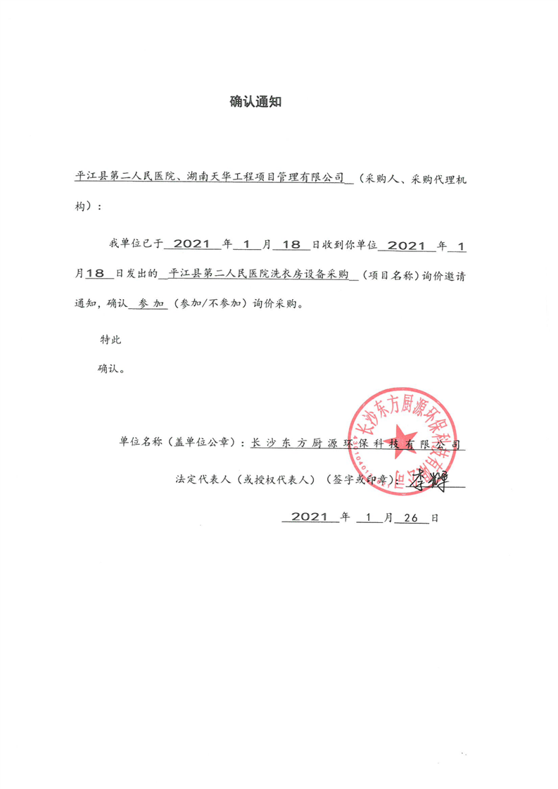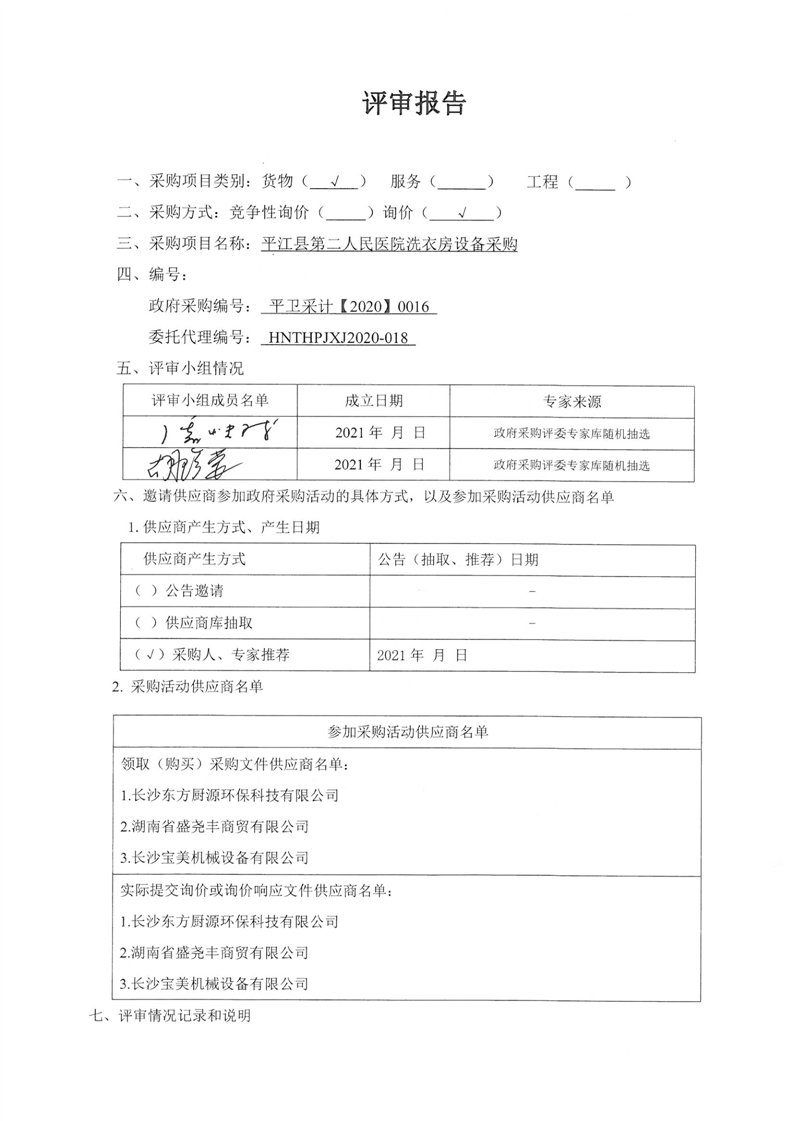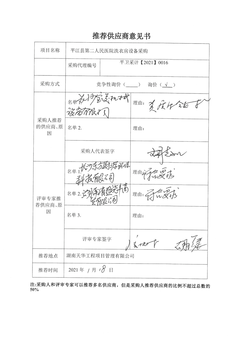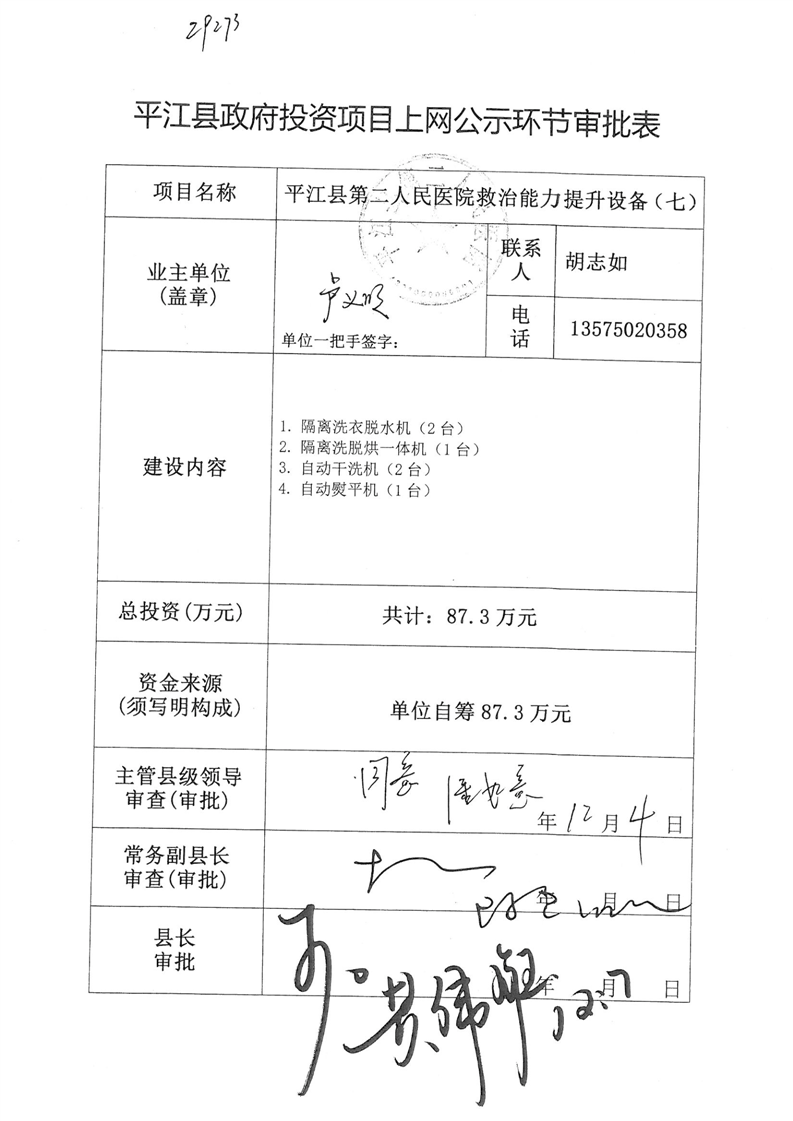 平江县第二人民医院洗衣房设备采购项目公示资料