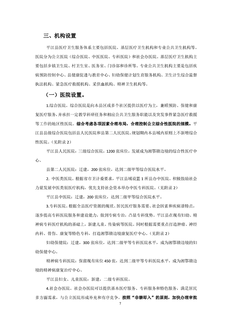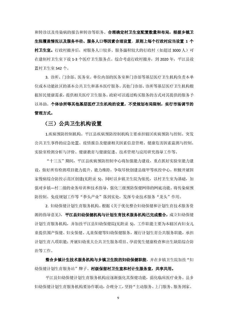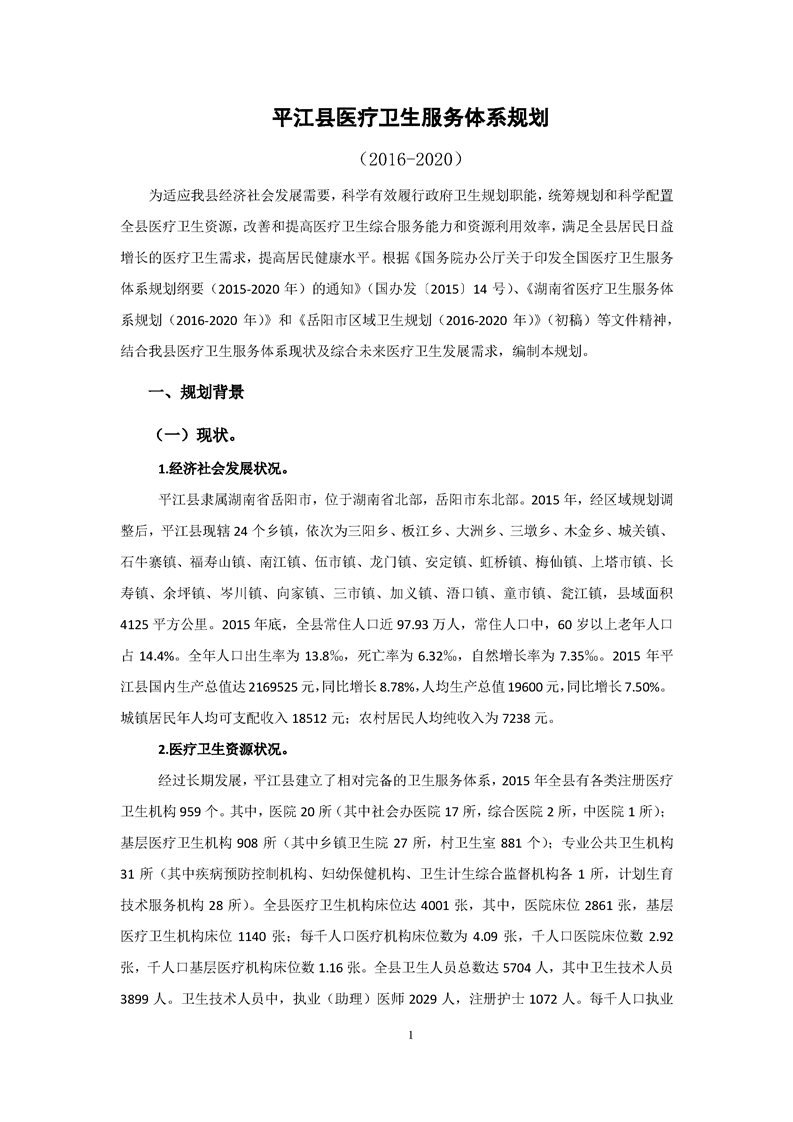 平江县医疗卫生服务体系规划