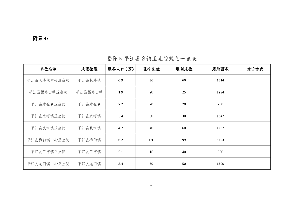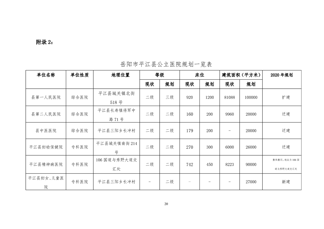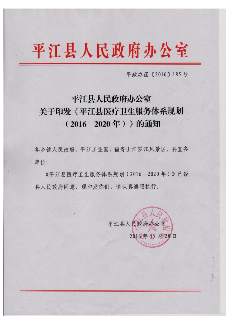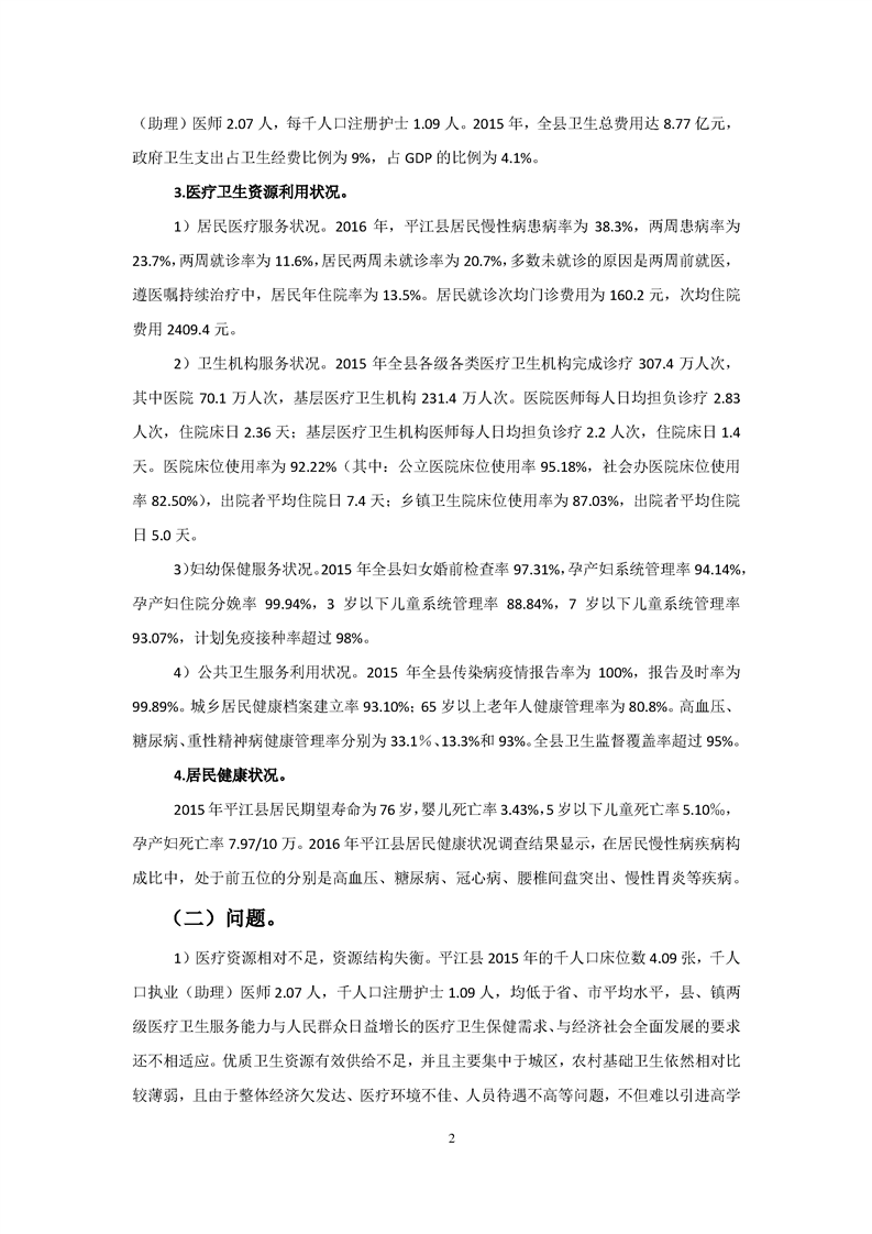 平江县医疗卫生服务体系规划