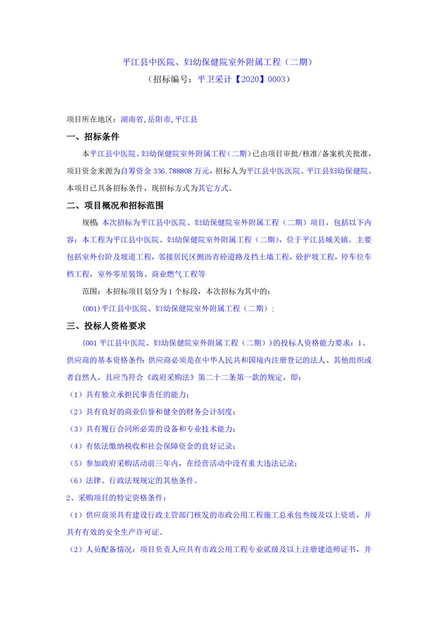 平江县中医院、妇幼保健院室外附属工程(二期)