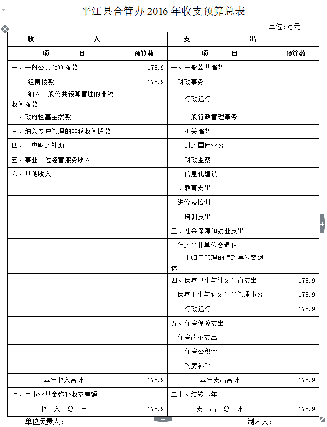 预算总收入178.9万元,其中经费拨款178.9万元。
