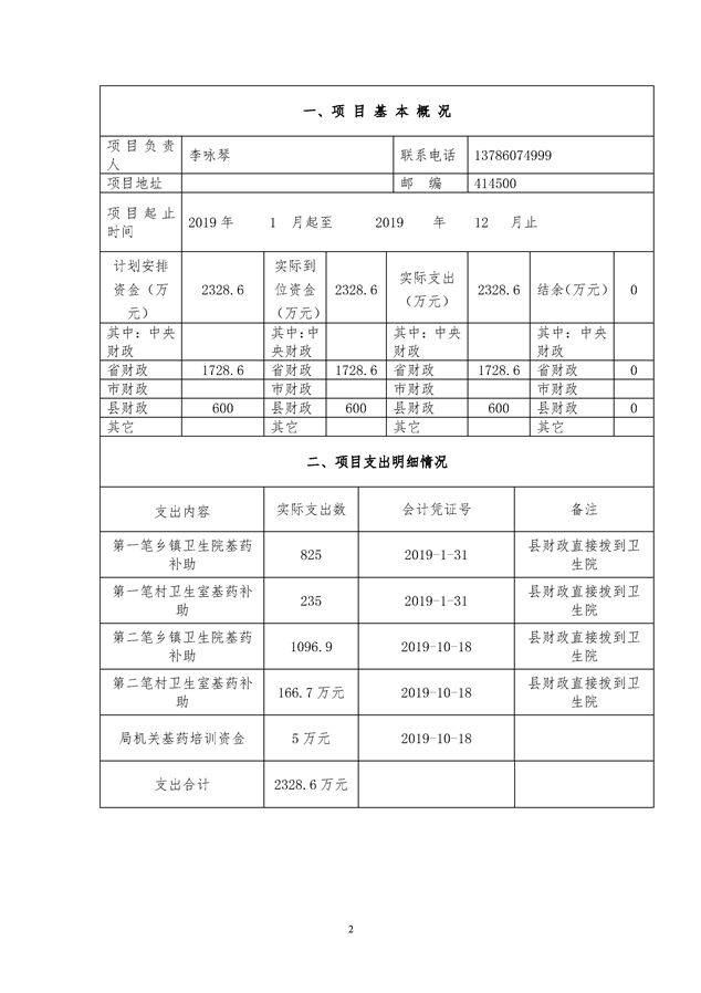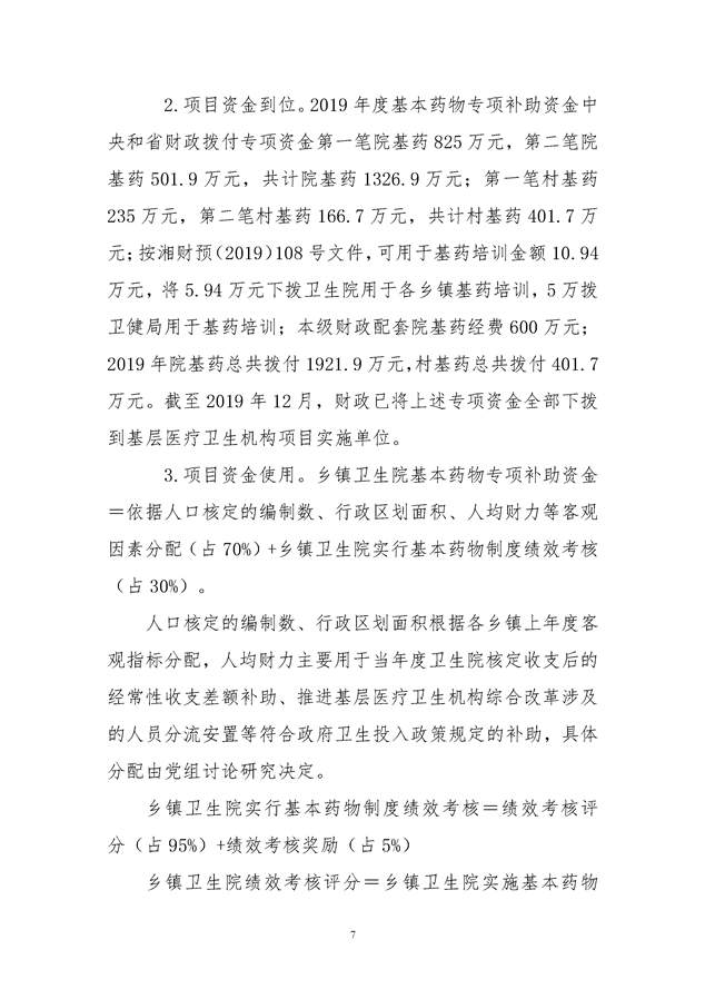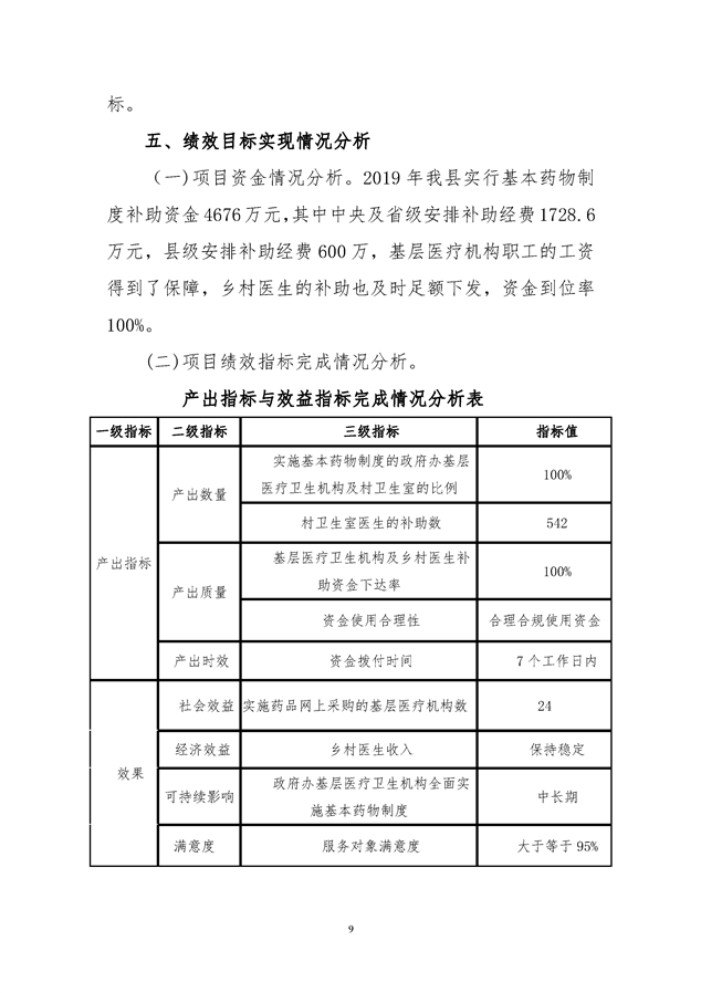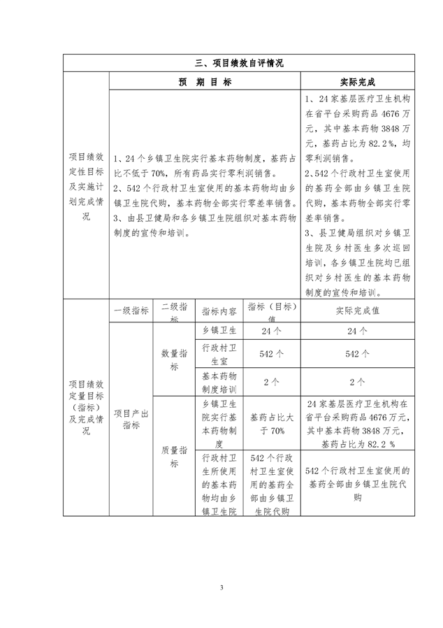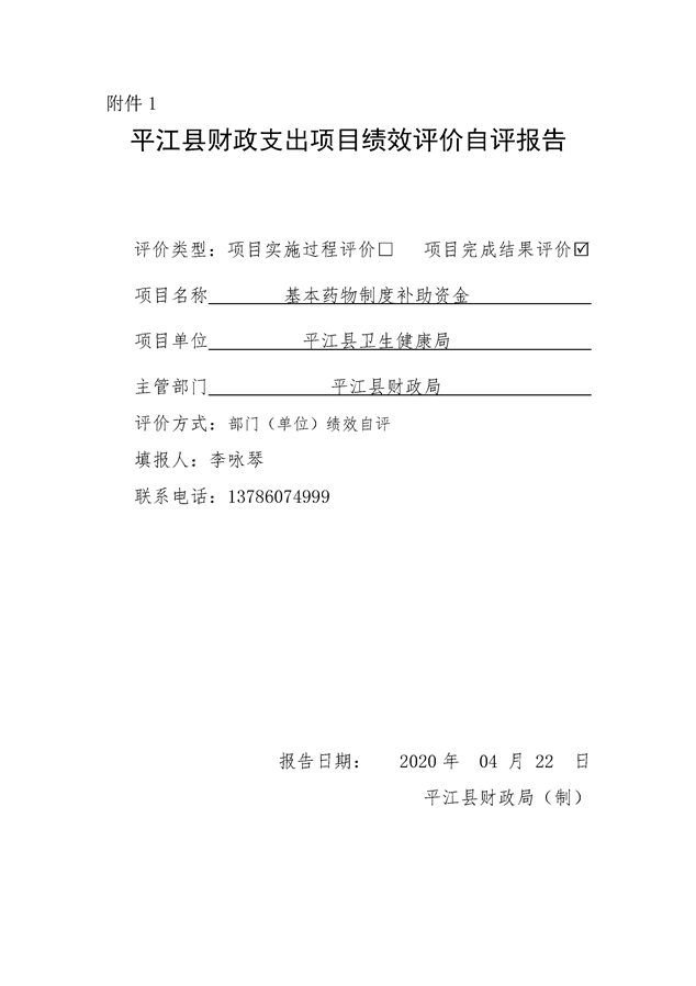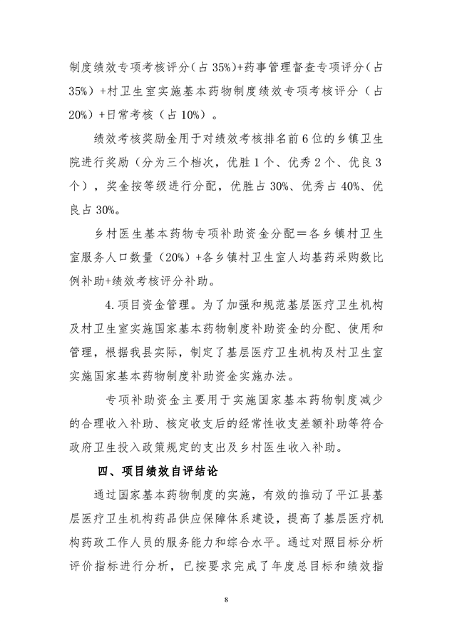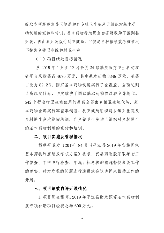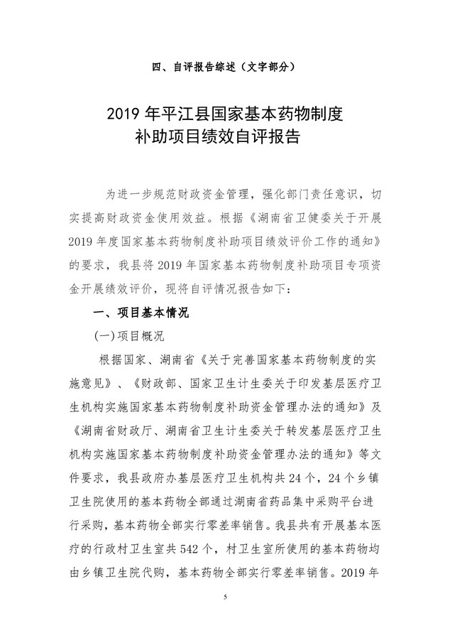平江县卫健局2019年度基药项目绩效评价自评报告