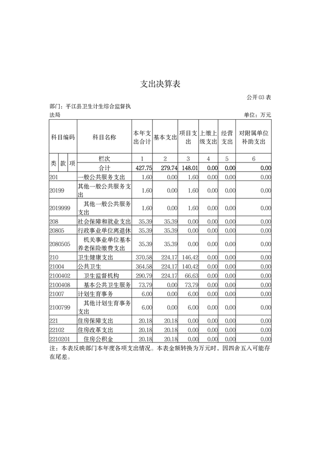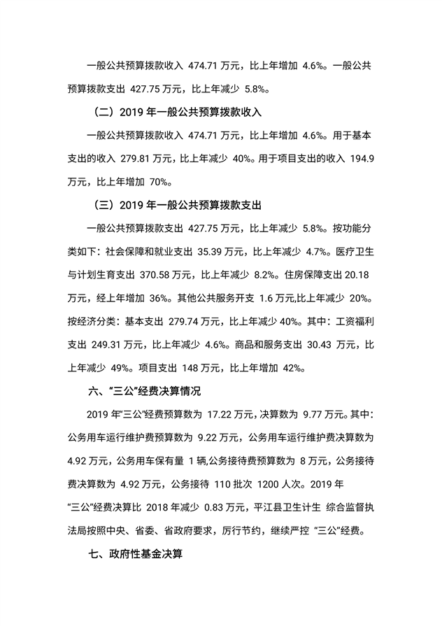 2019年度平江县卫生计生综合监督执法局部门决算说明