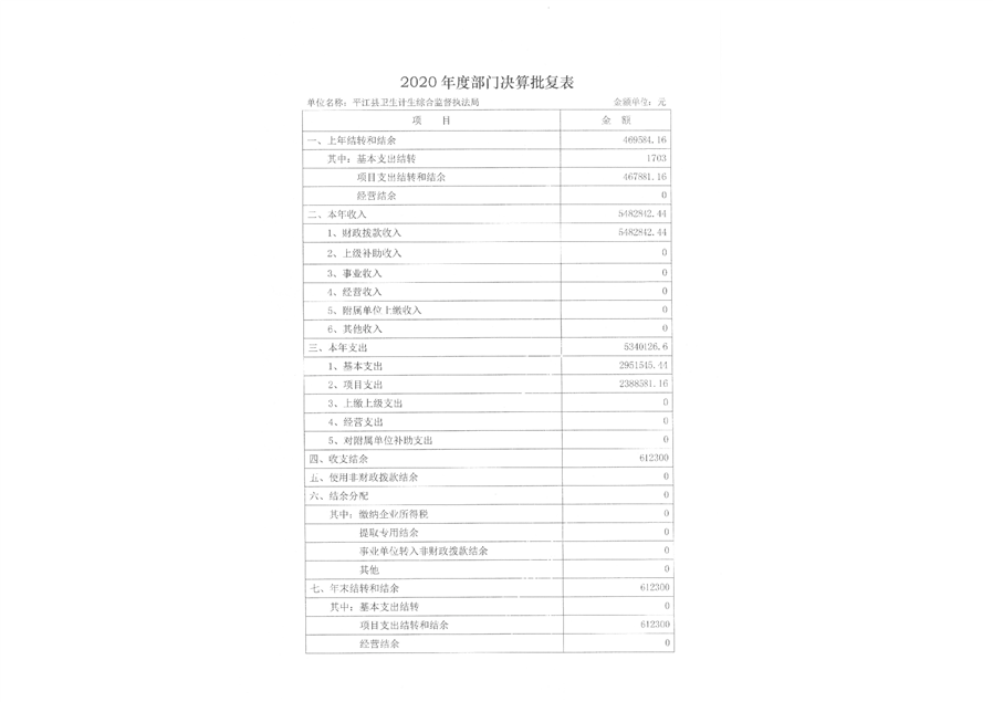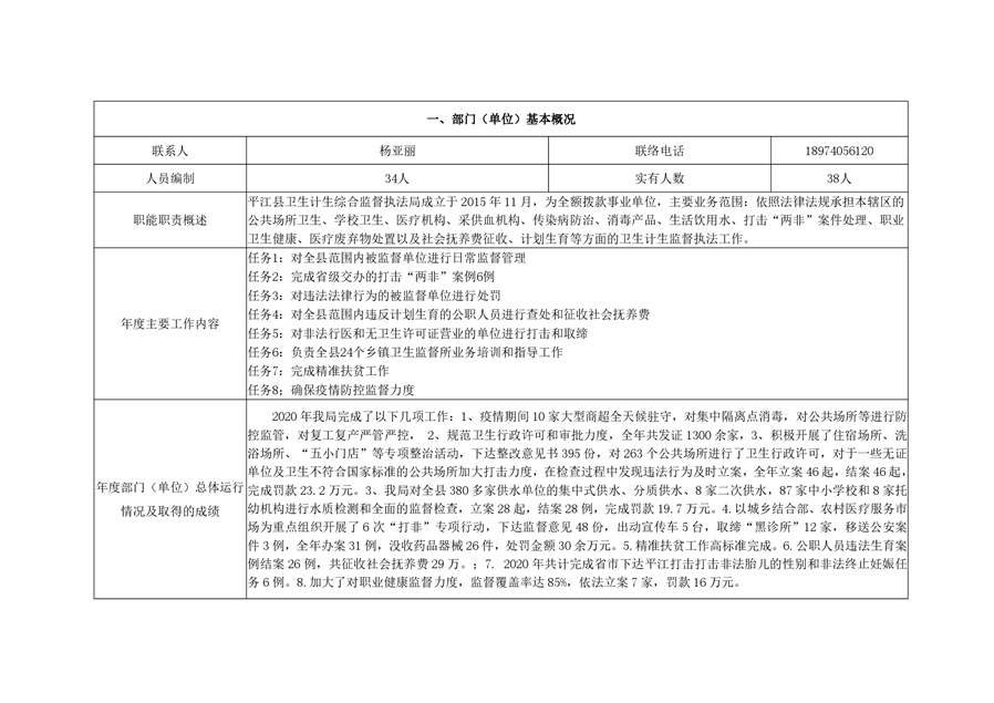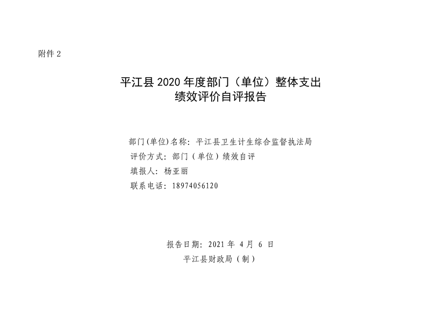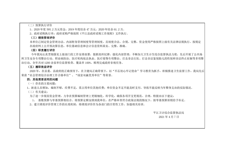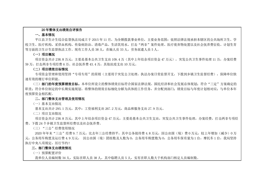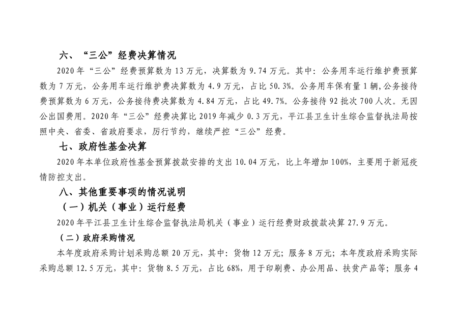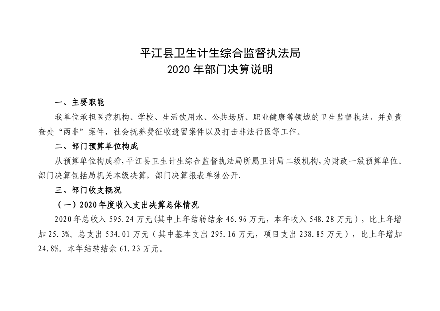 平江县卫生计生综合监督执法局2020年部门决算说明
