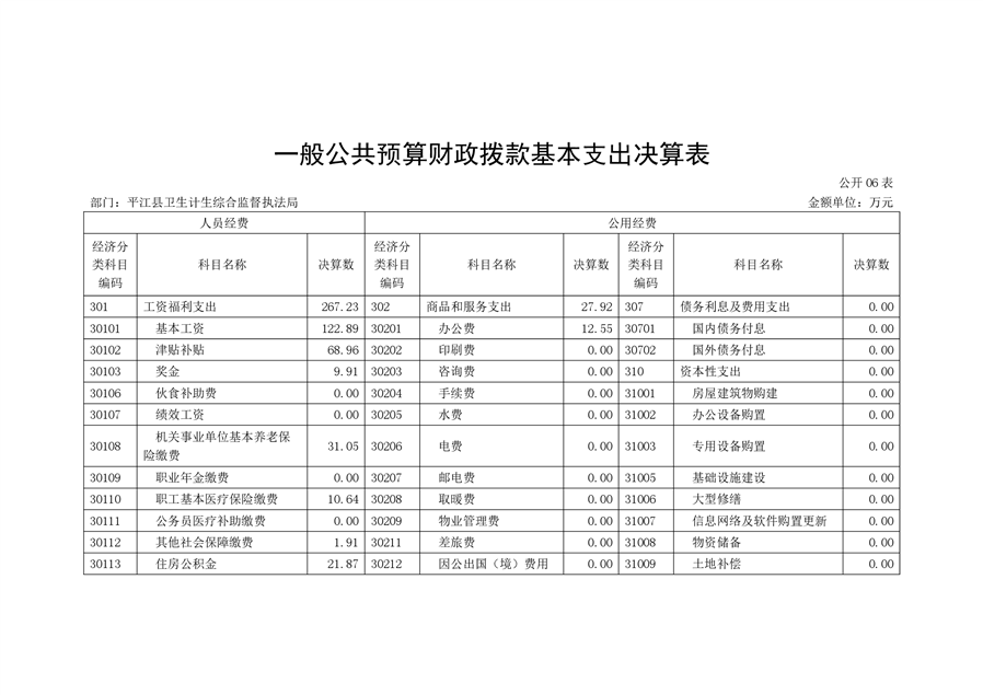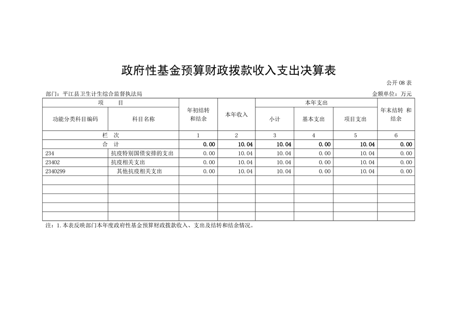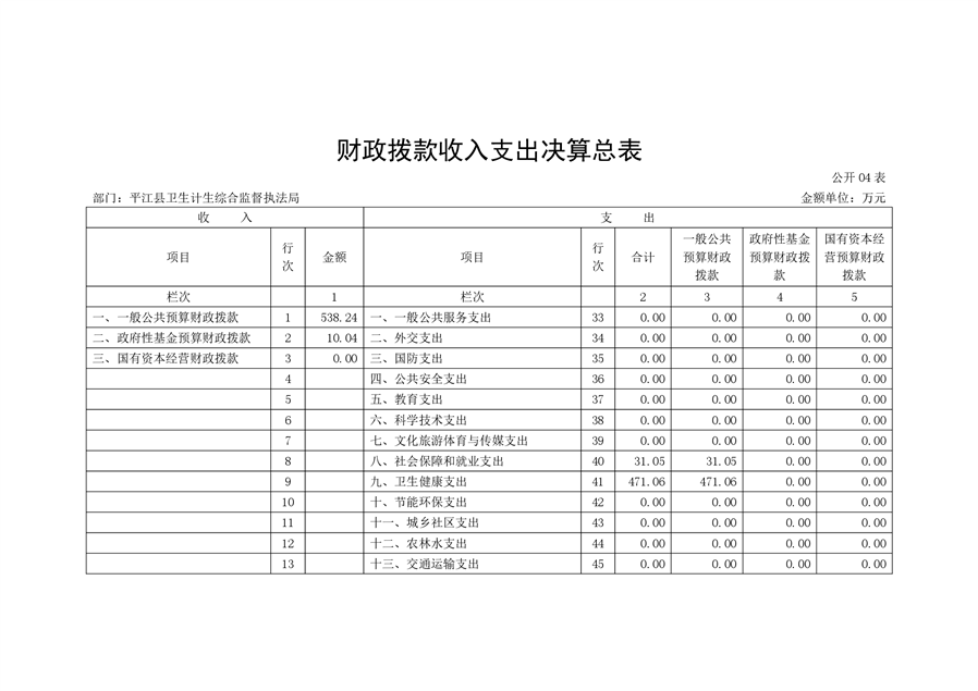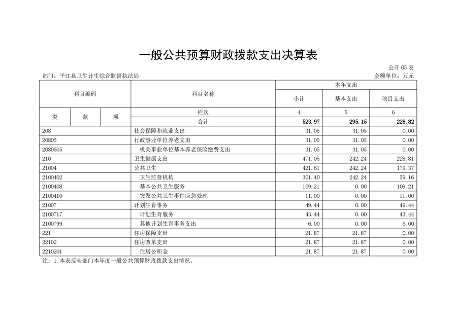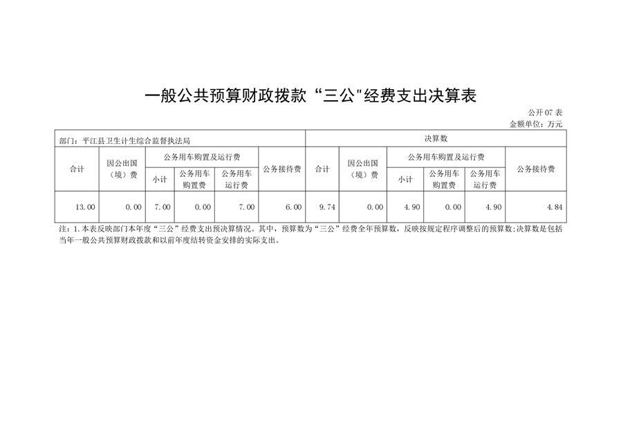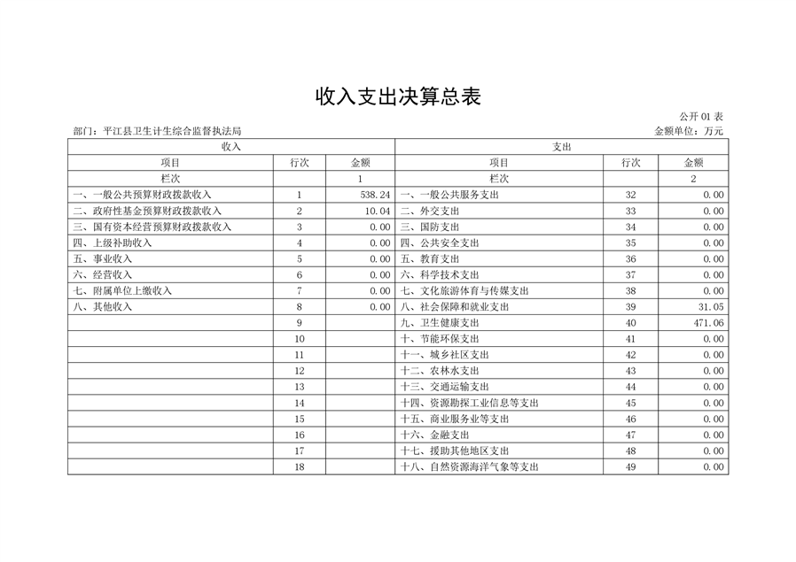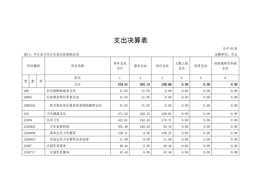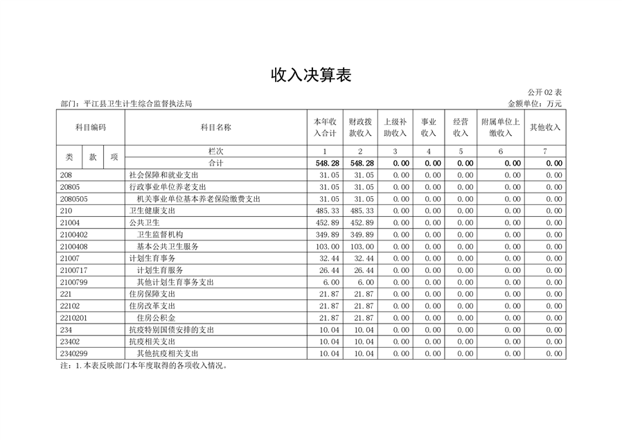 平江县卫生计生综合监督执法局2020年部门决算说明