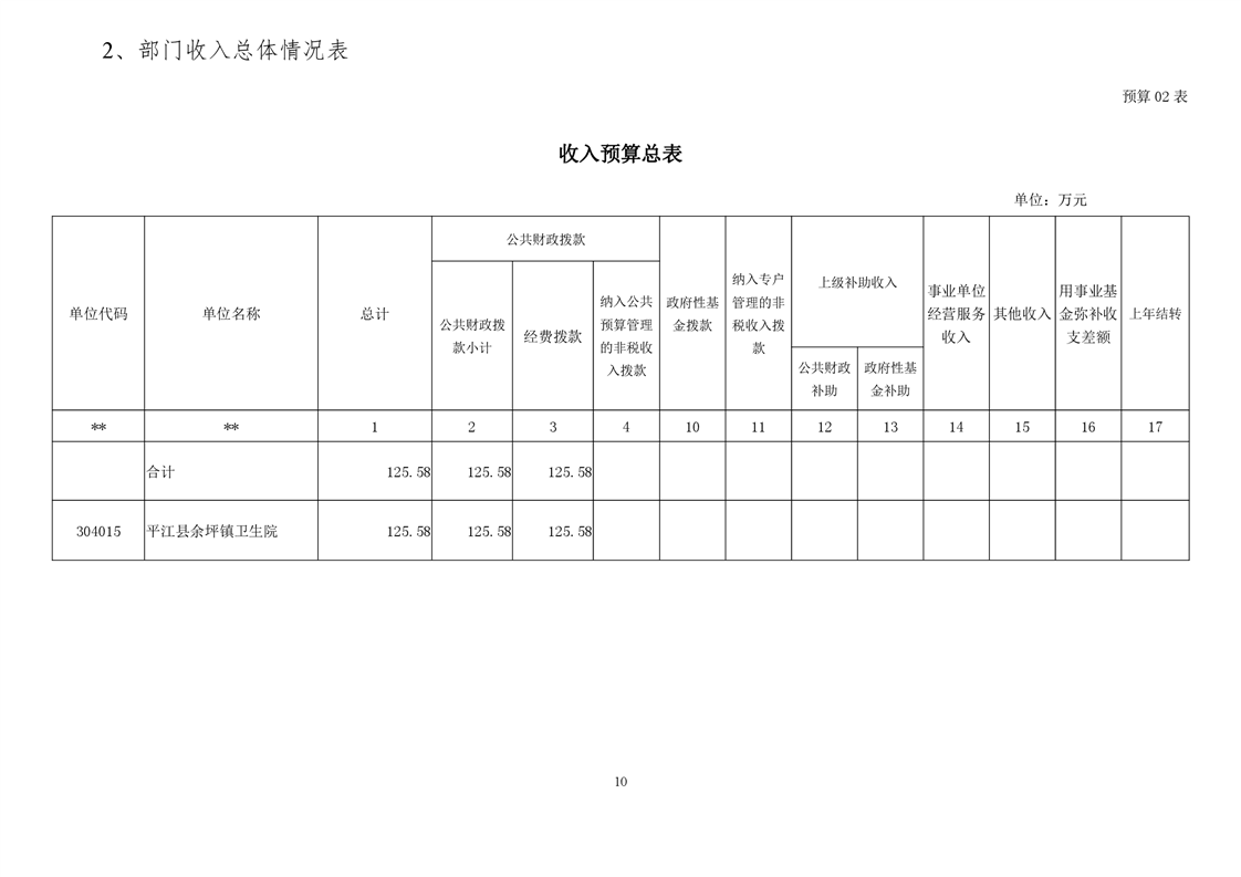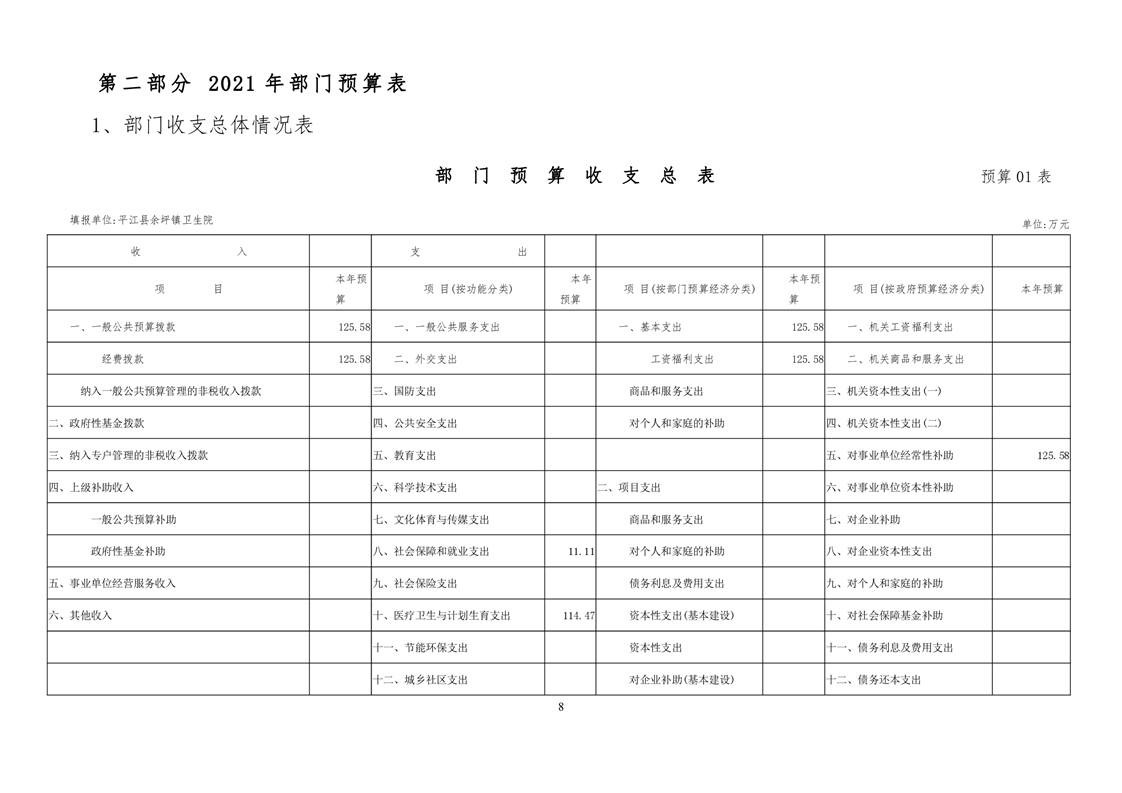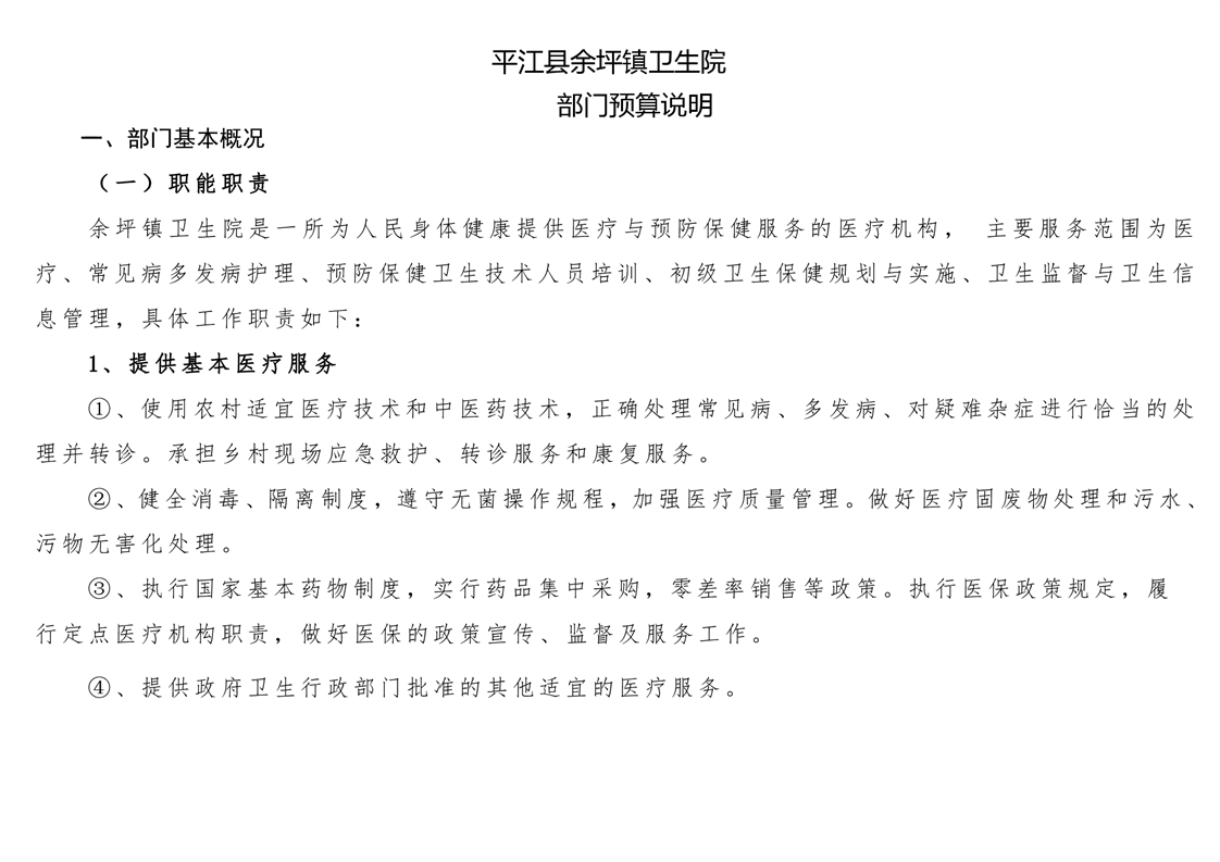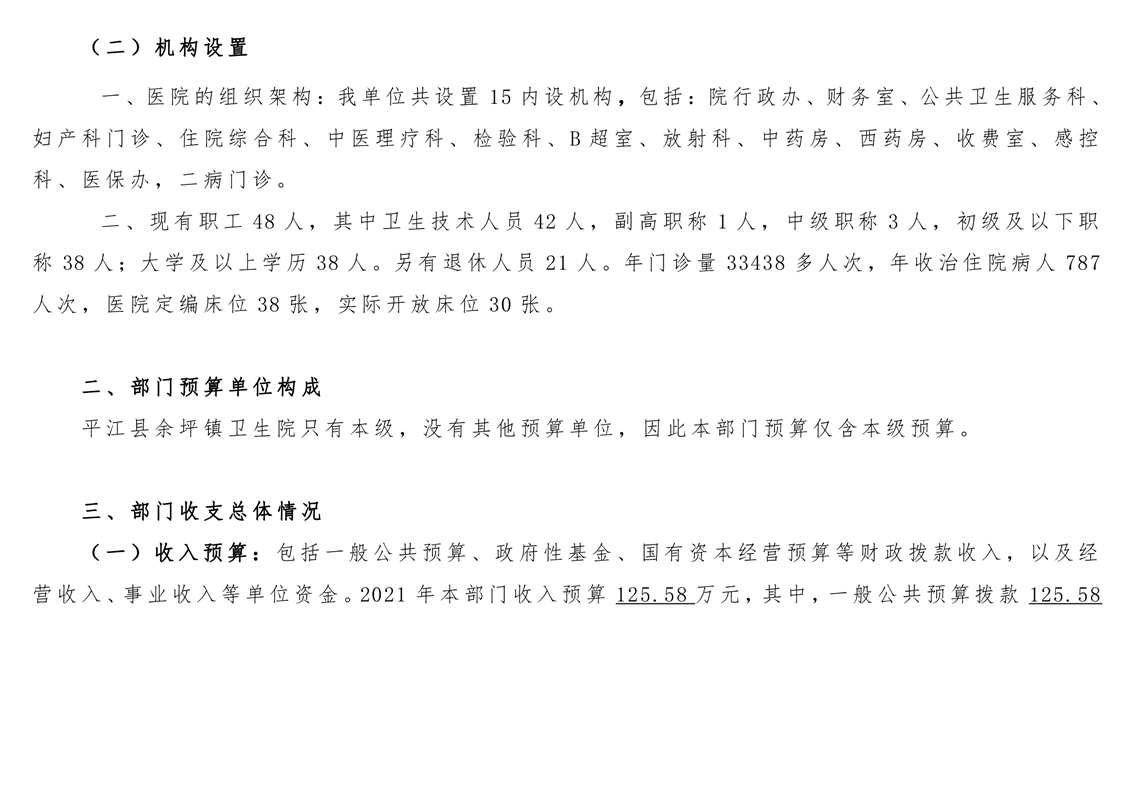 余坪镇卫生院2021年部门预算公开