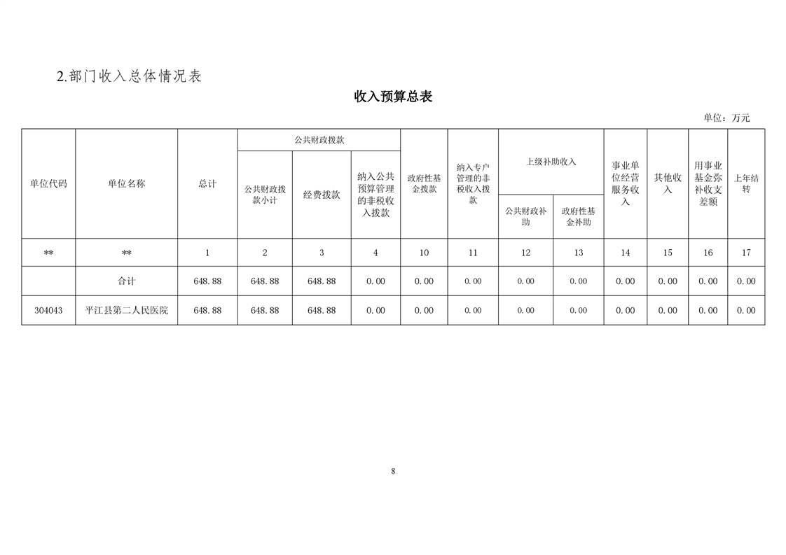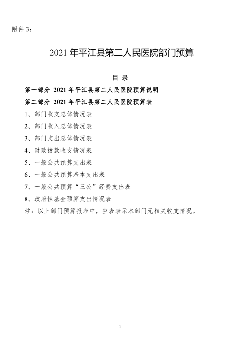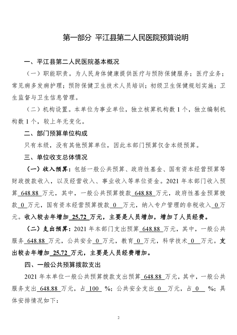 平江县第二人民医院2021年部门预算公开