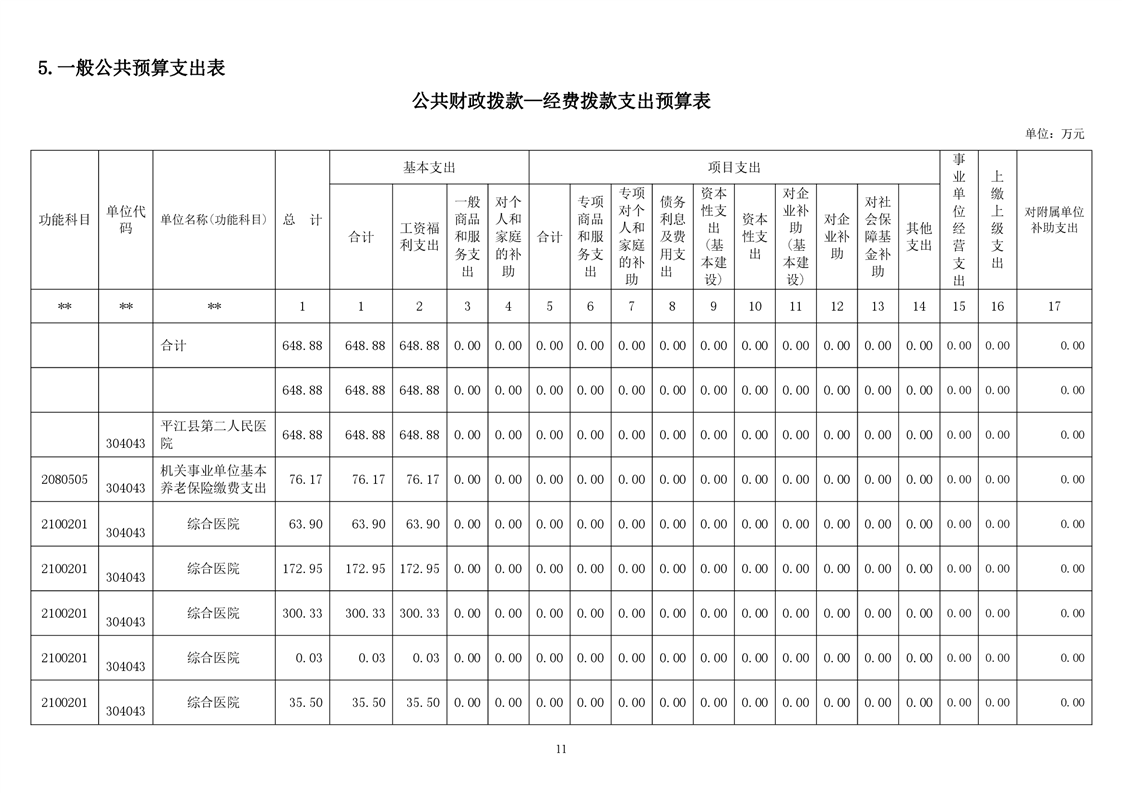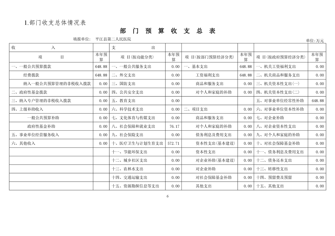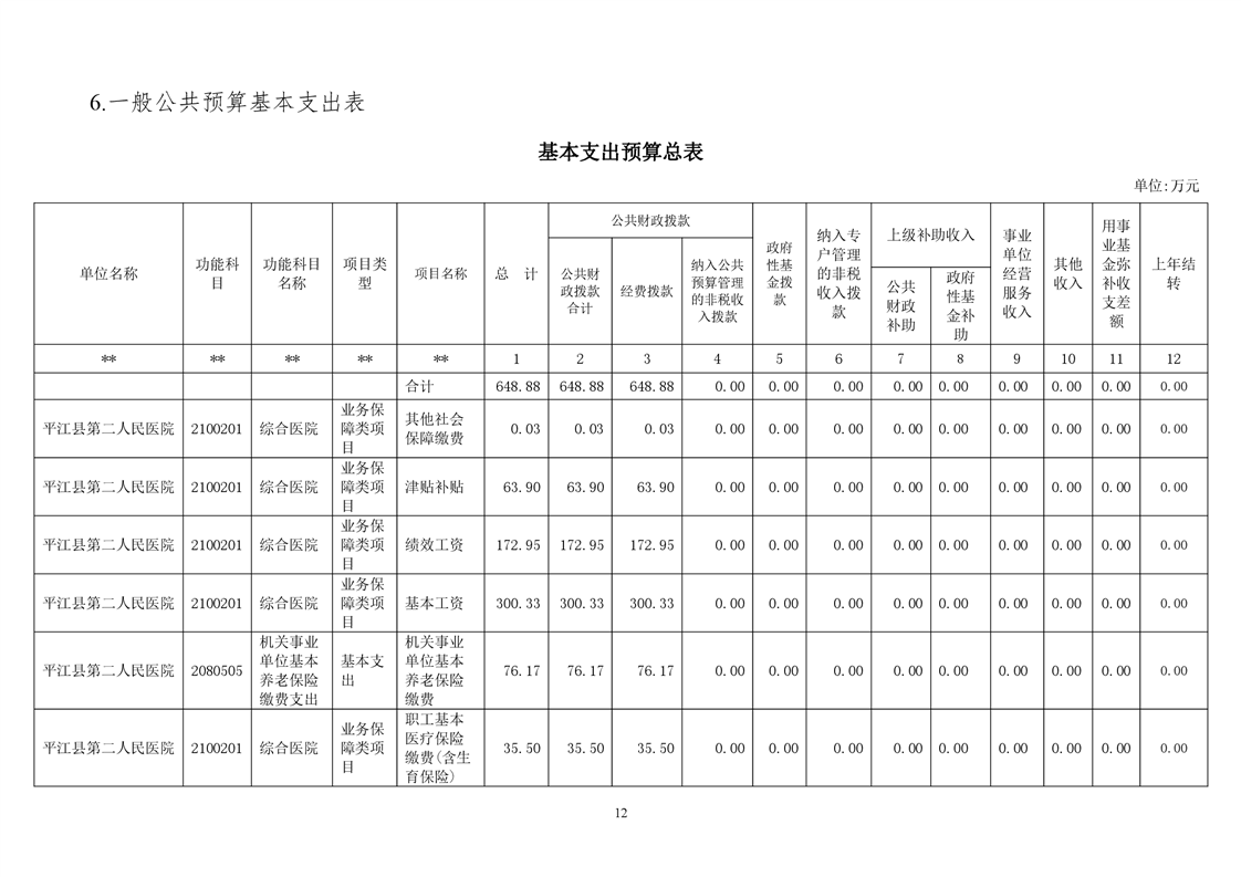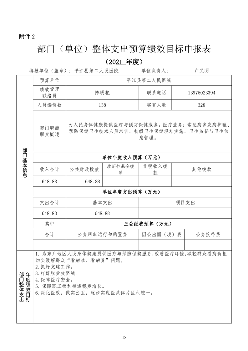 平江县第二人民医院2021年部门预算公开
