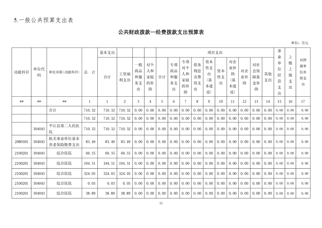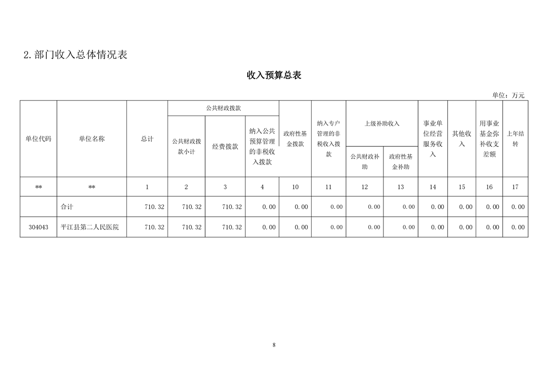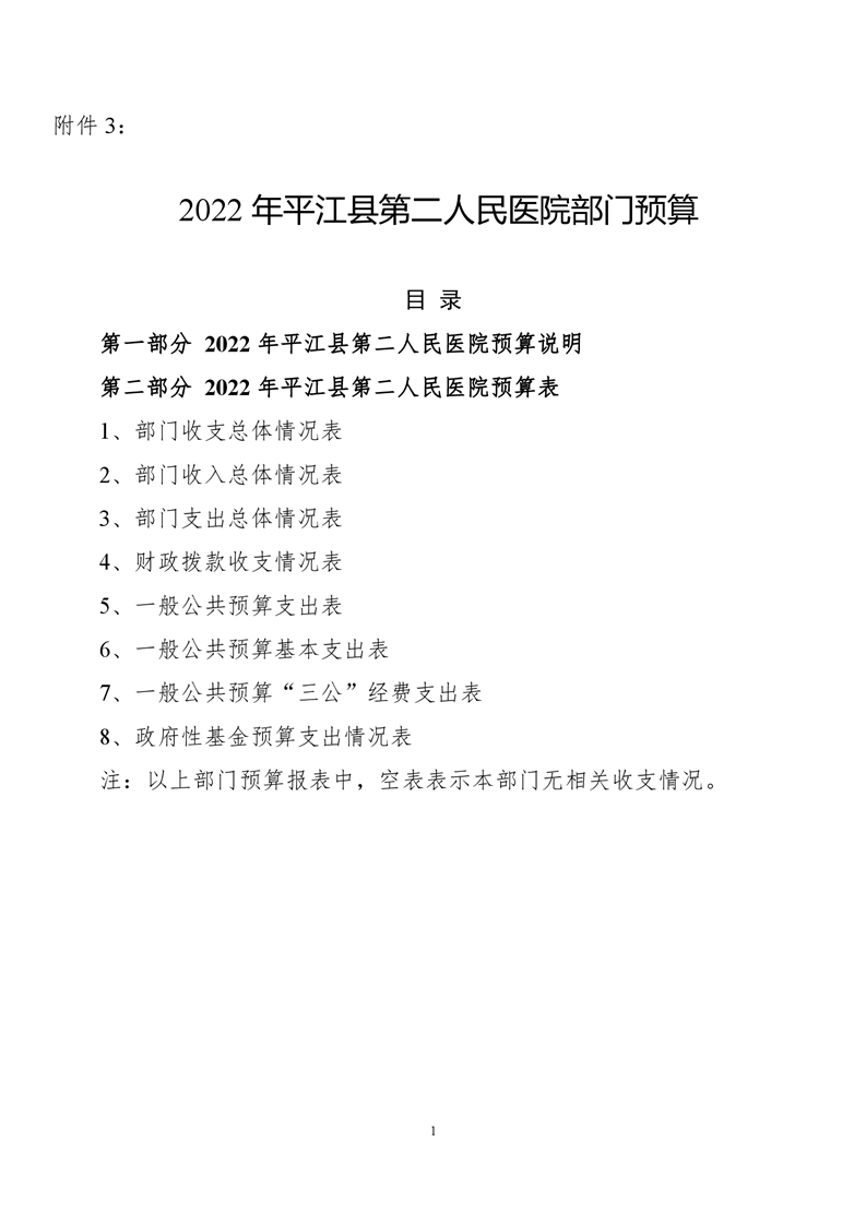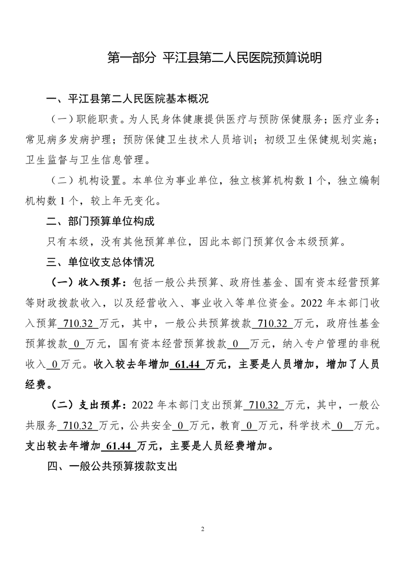 平江县第二人民医院2022年部门预算公开