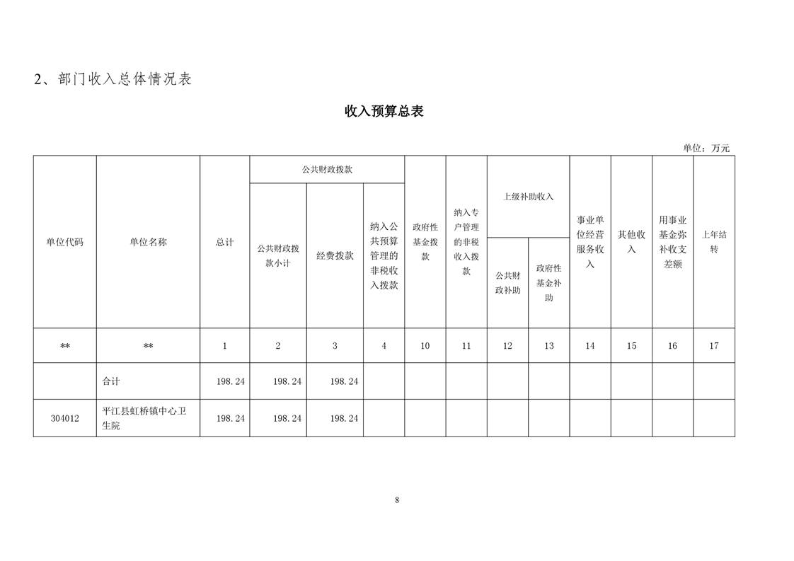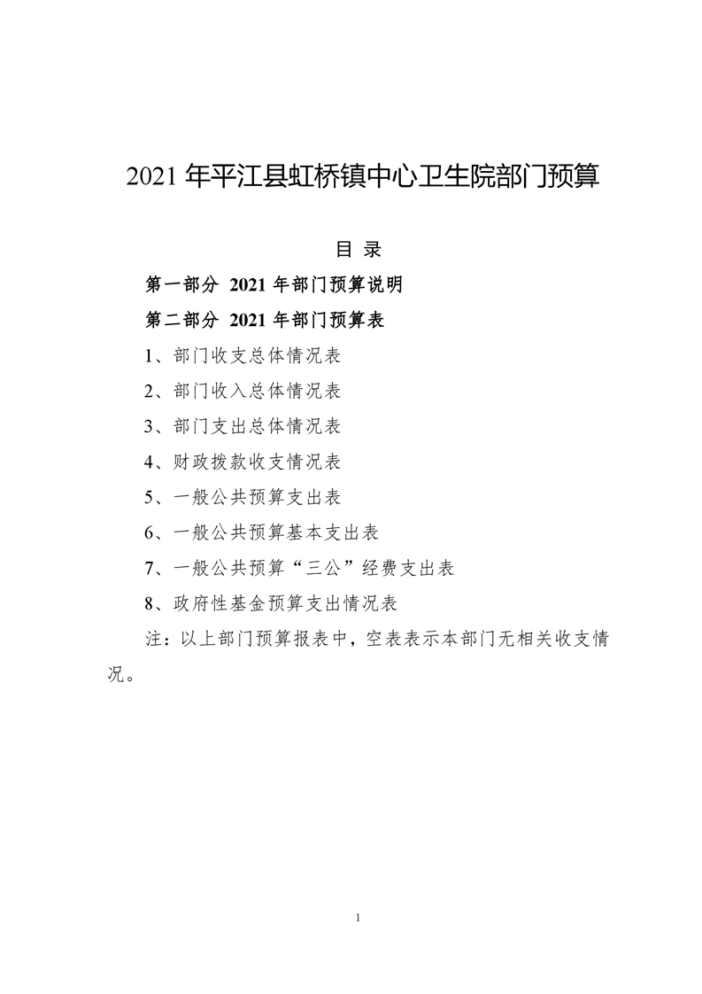 虹桥镇卫生院2021年部门预算公开