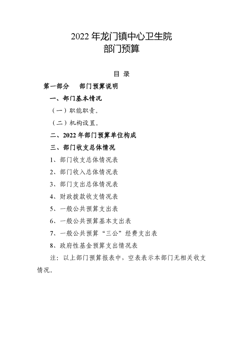 龙门镇卫生院2022年部门预算公开