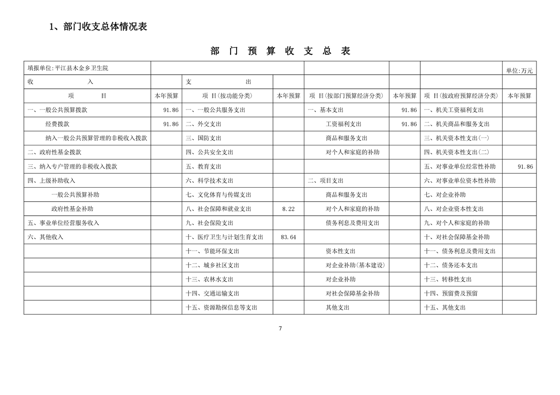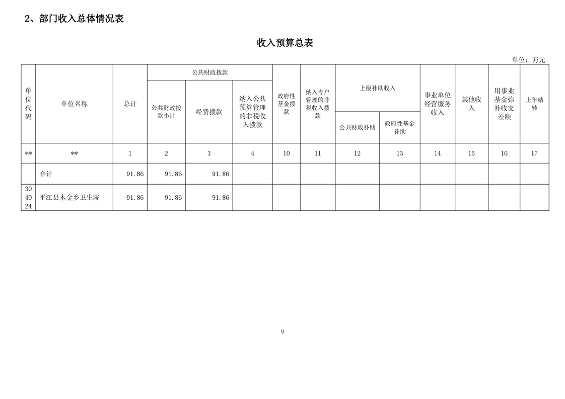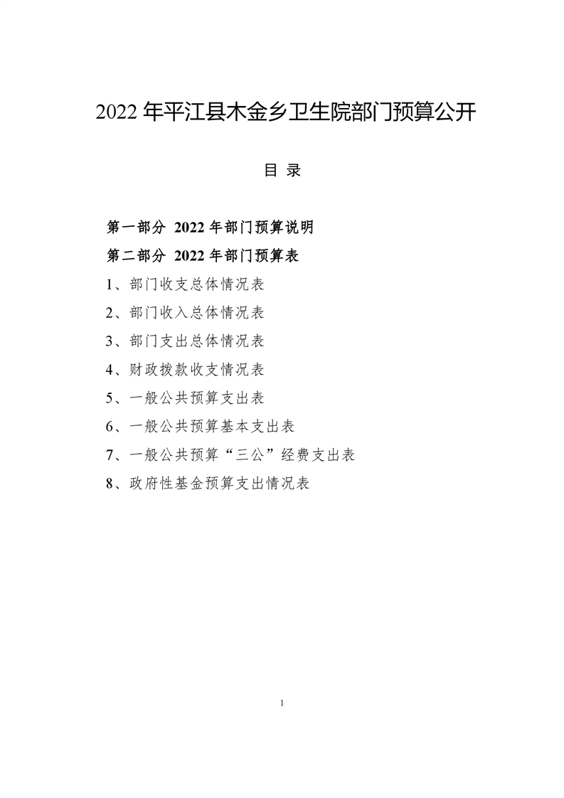 木金乡卫生院2022年部门预算公开