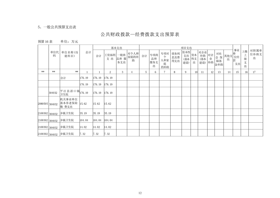 浯口镇卫生院2021年部门预算公开