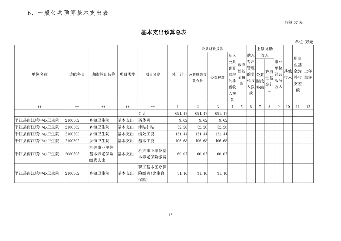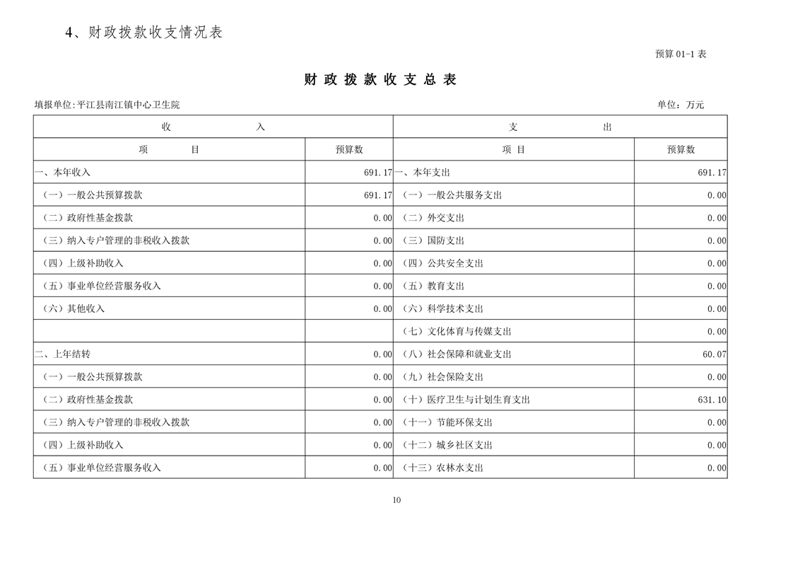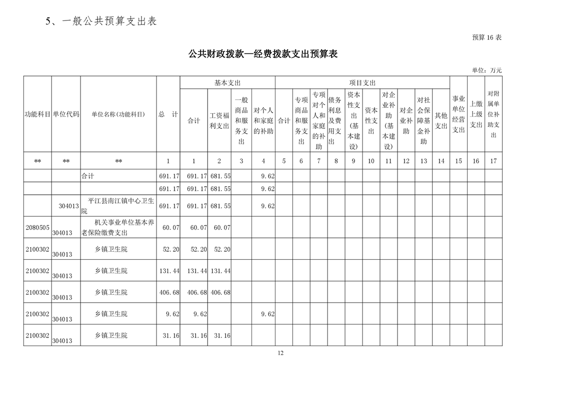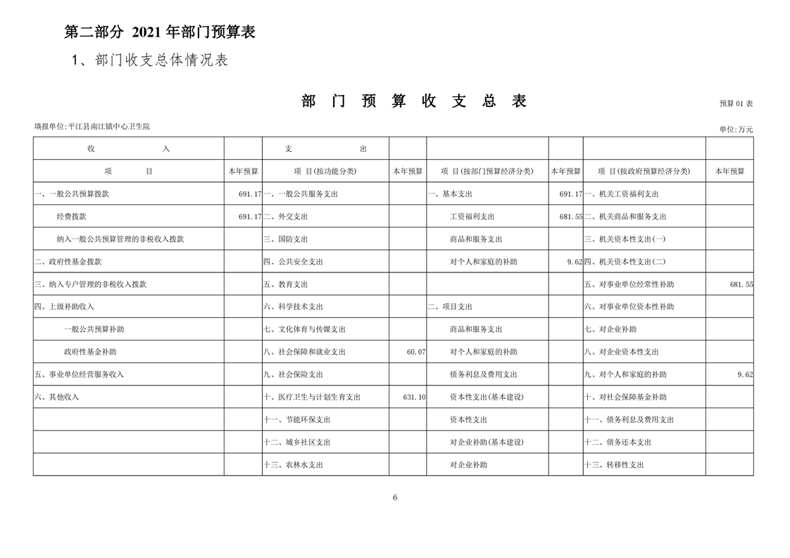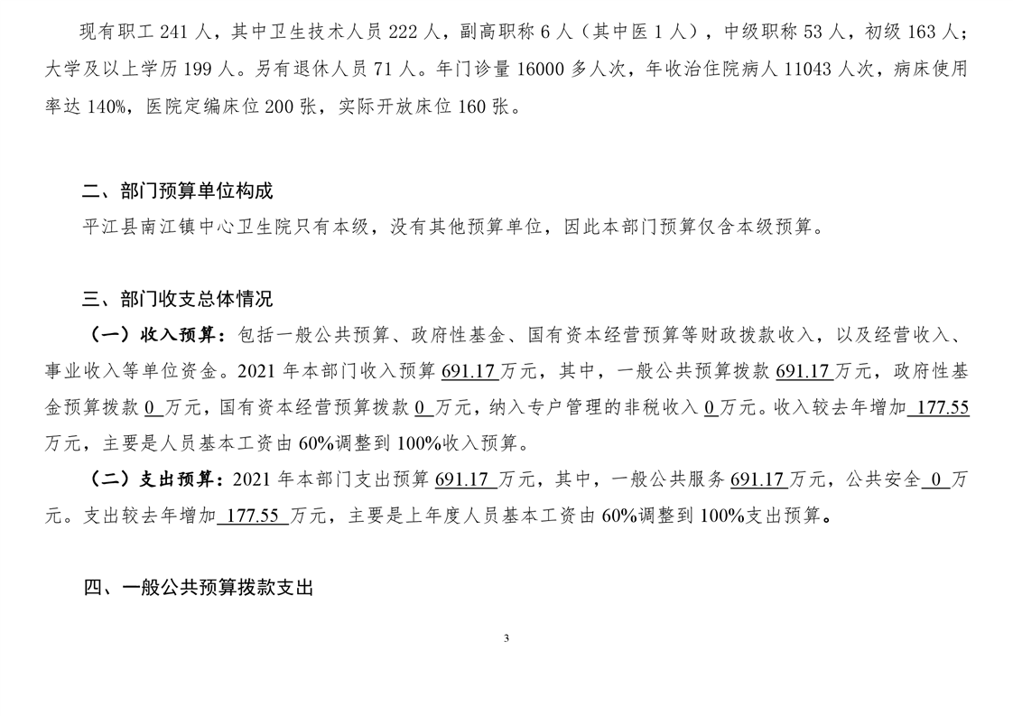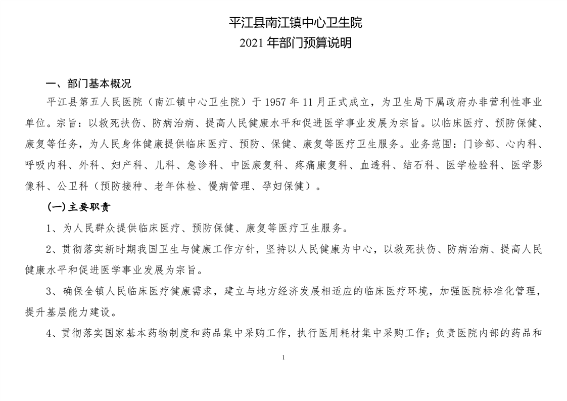 南江镇卫生院2021年部门预算公开