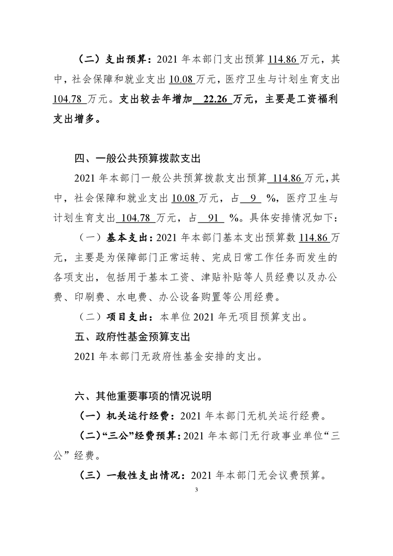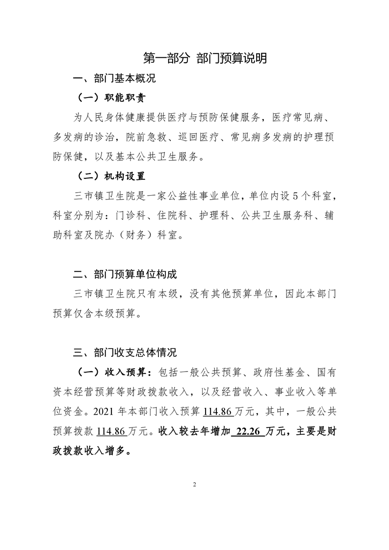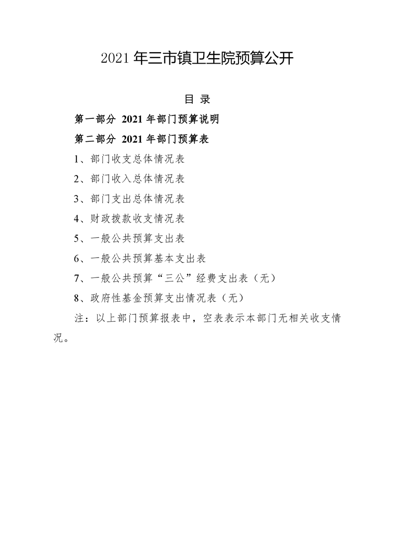 三市镇卫生院2021年部门预算公开