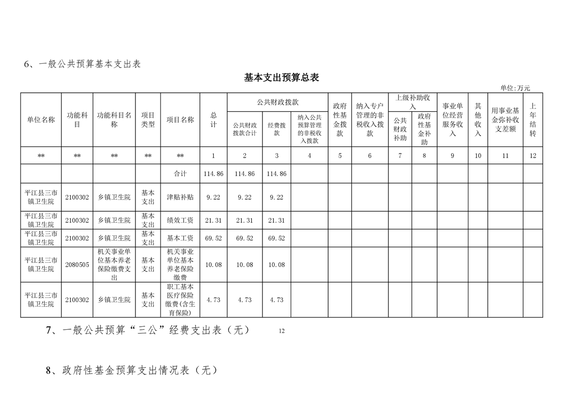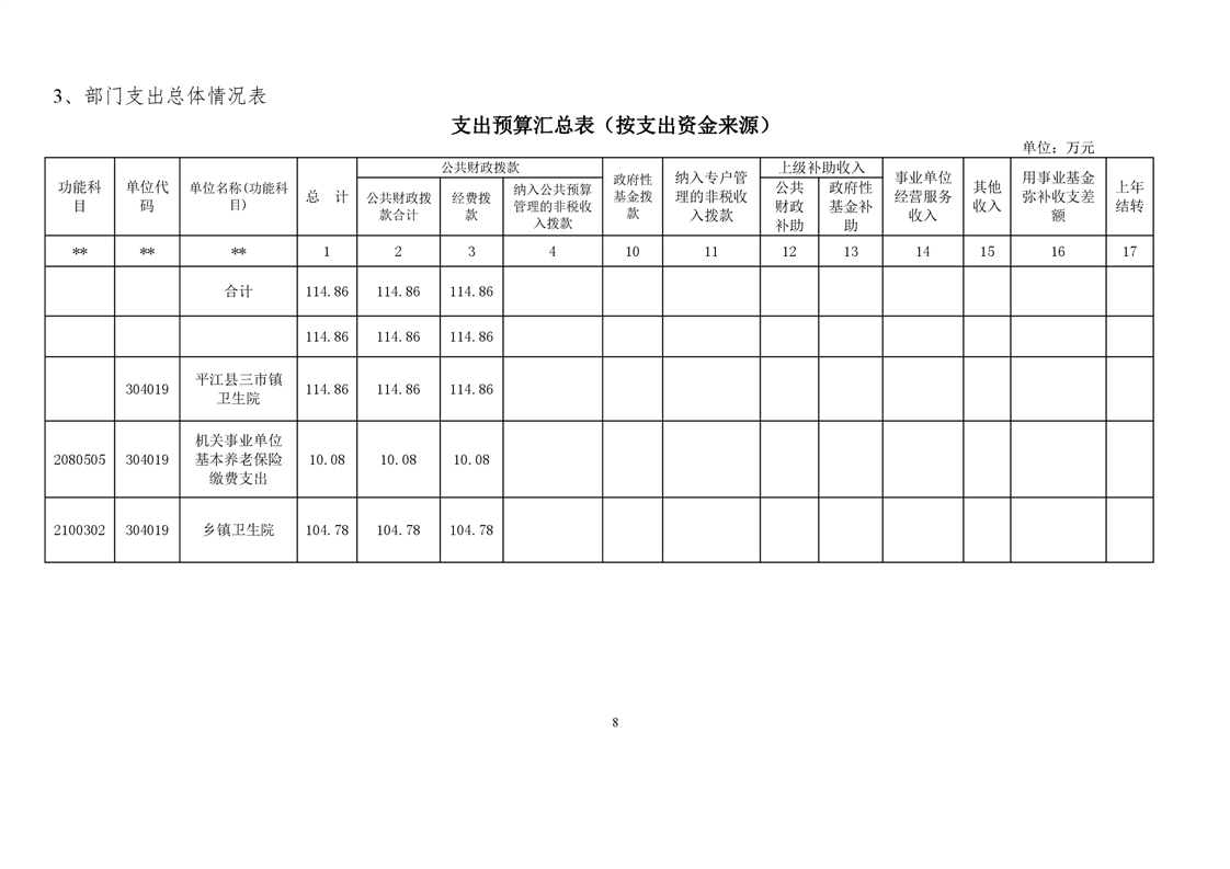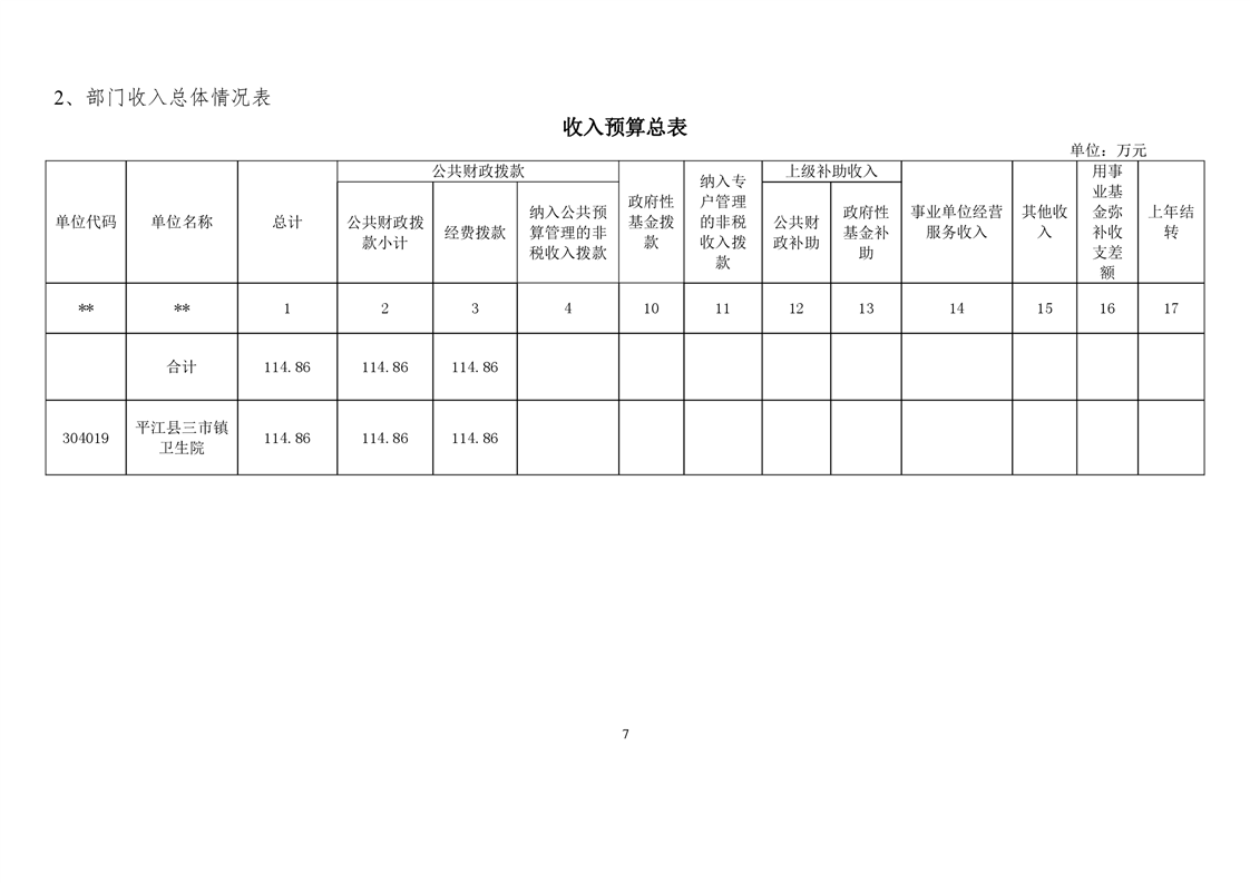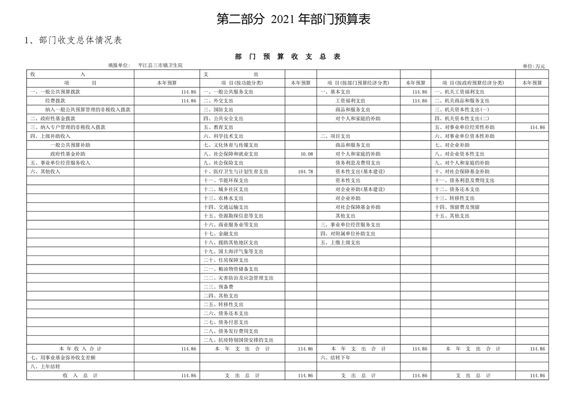 三市镇卫生院2021年部门预算公开