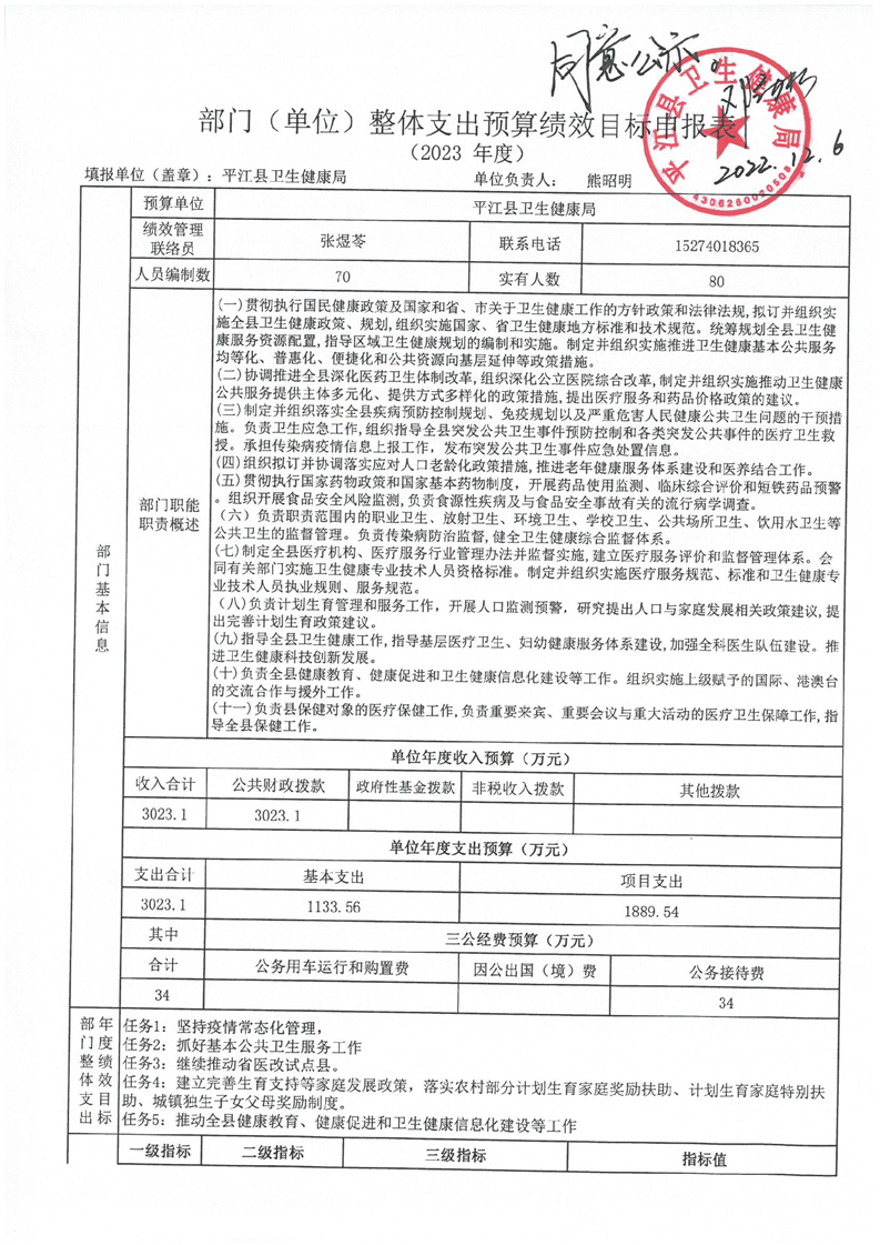 2023年卫健局绩效申报表