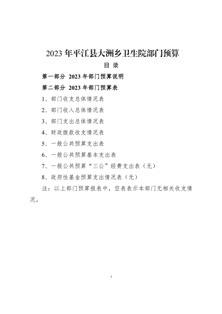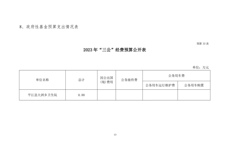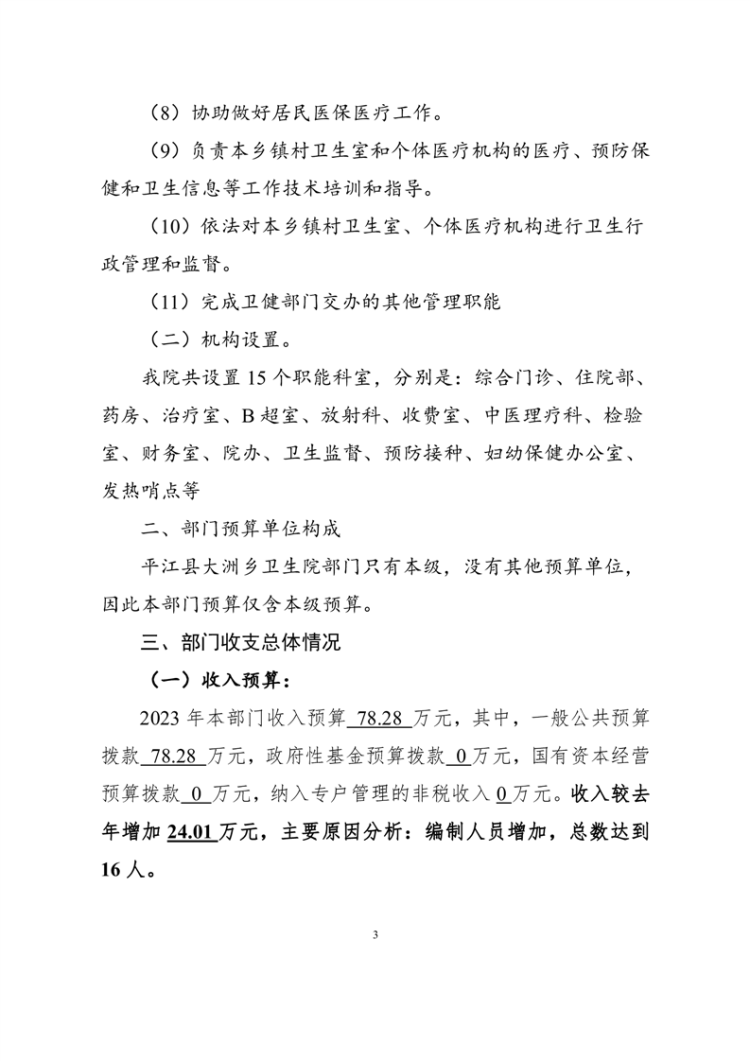 大洲乡卫生院2023年预算公开