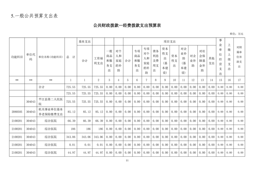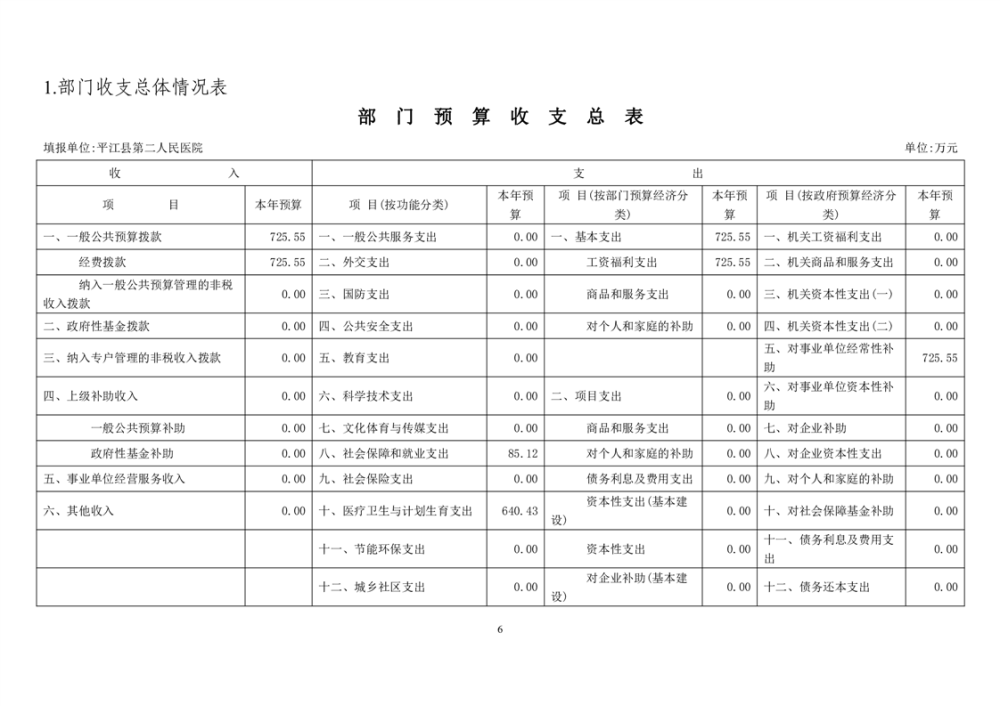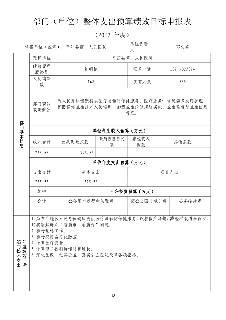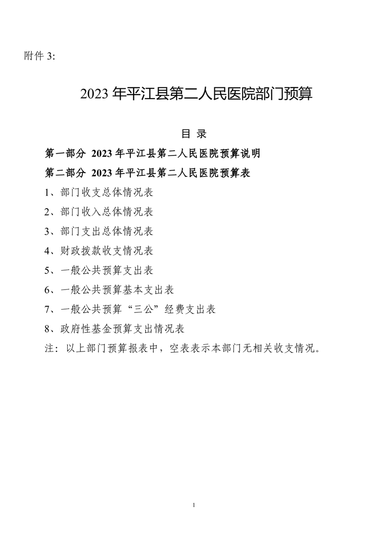 平江县第二人民医院2023年预算公开