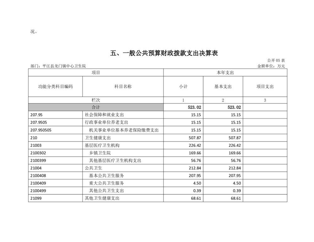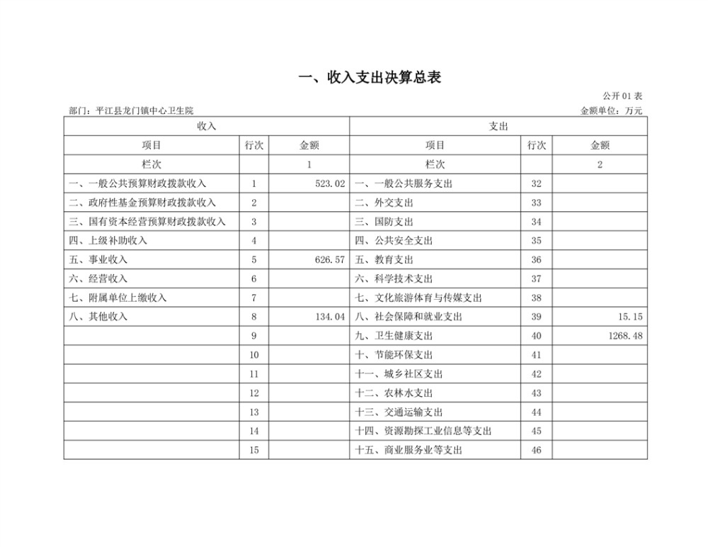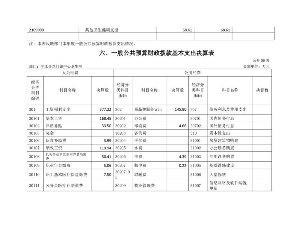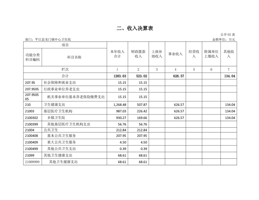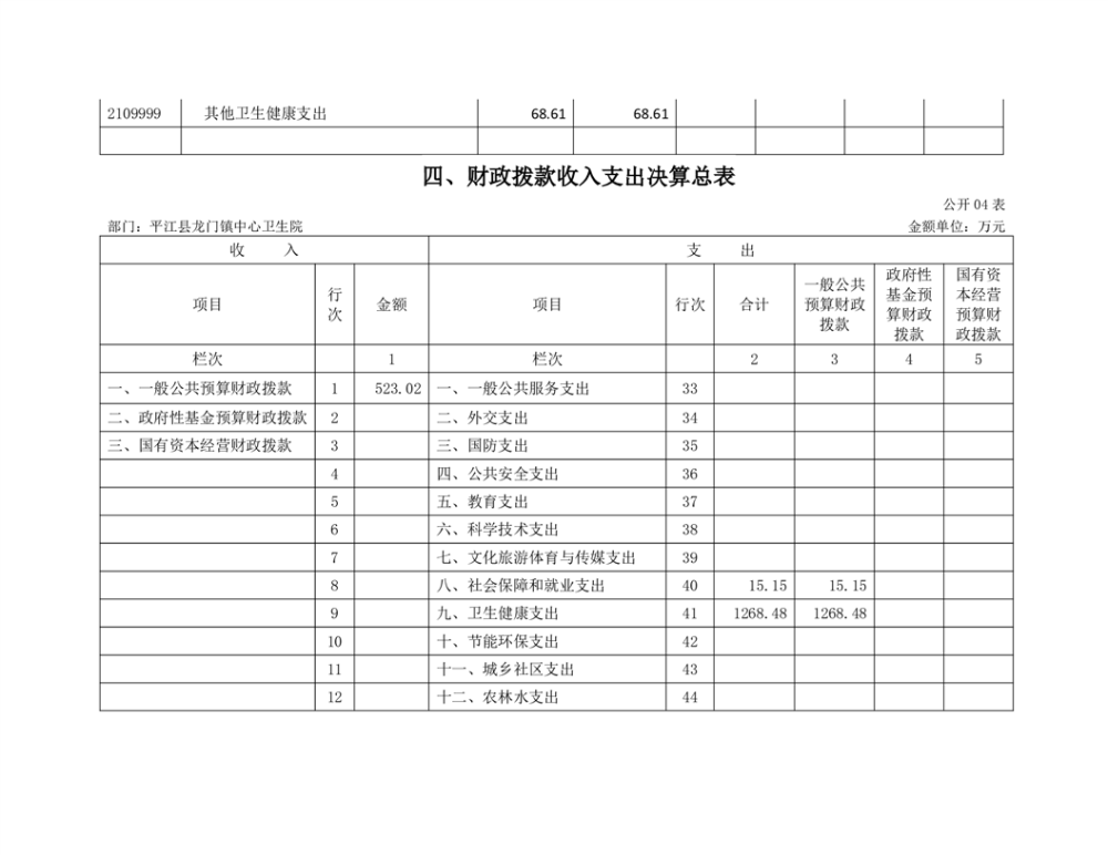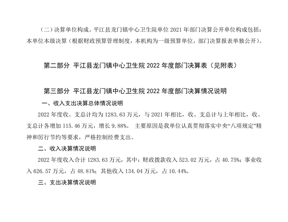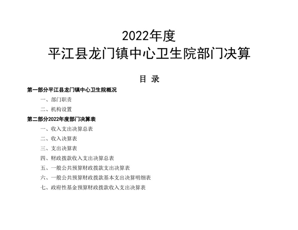龙门卫生院2022年度部门决算公开