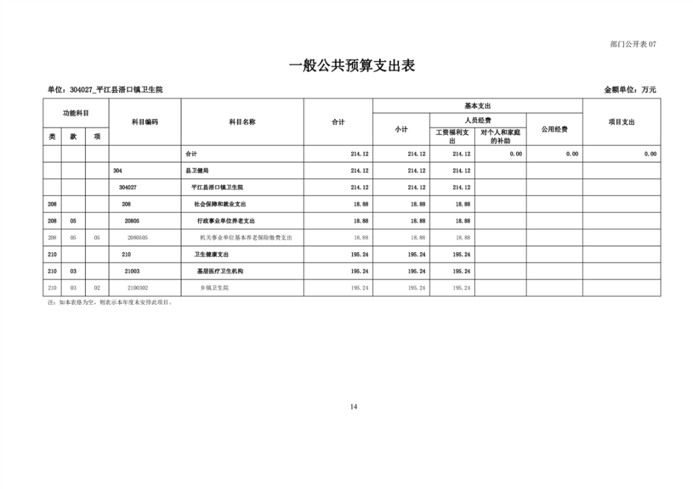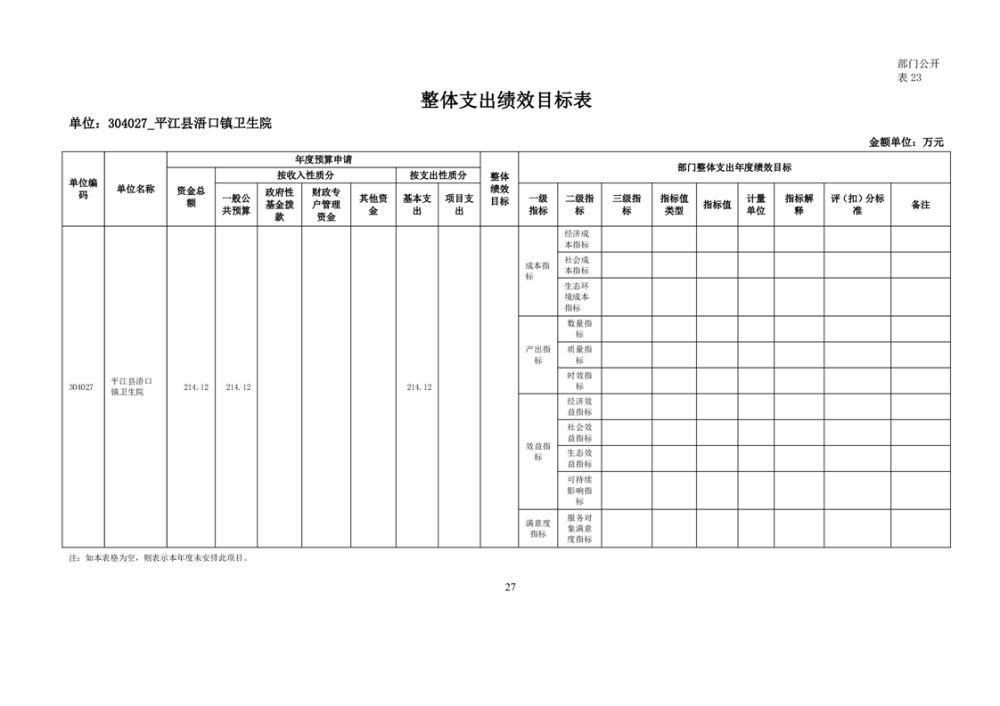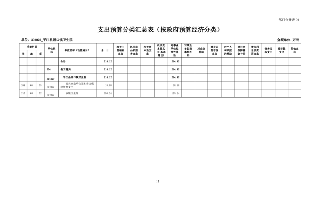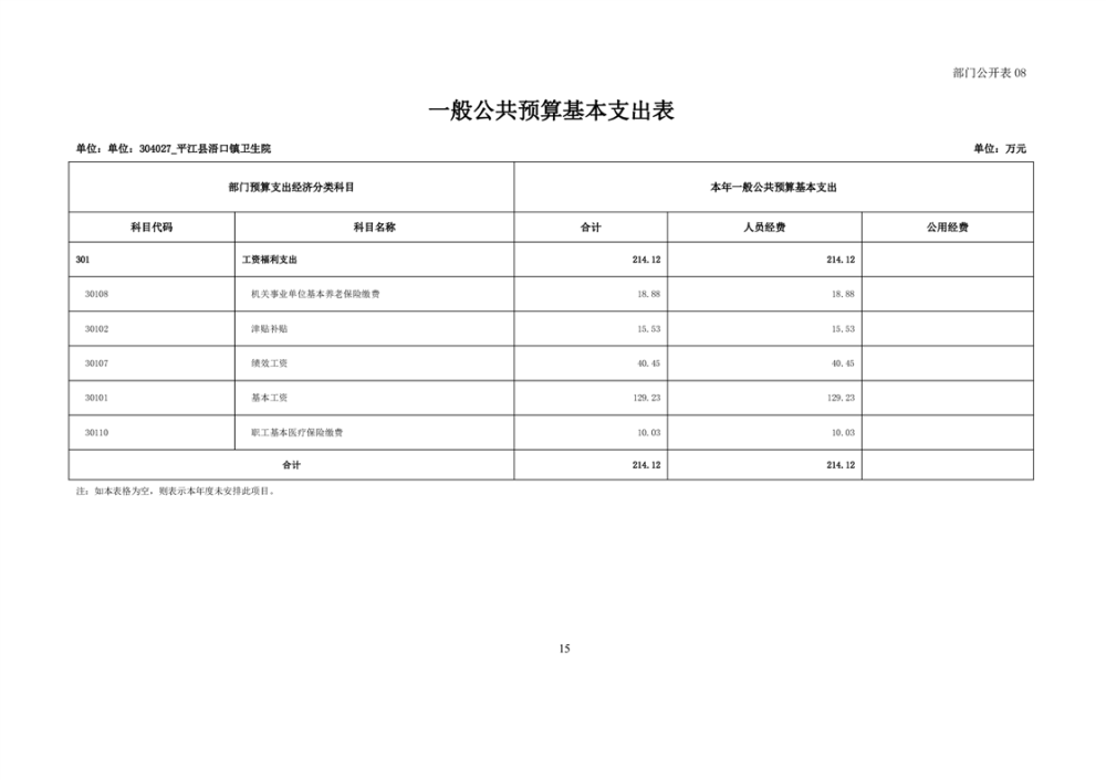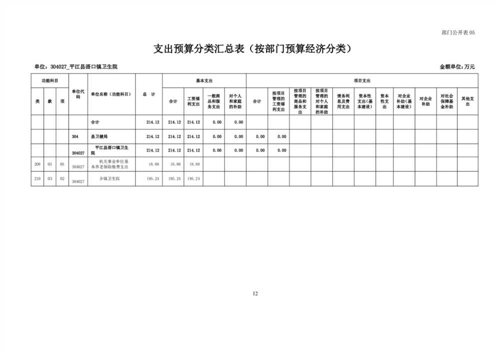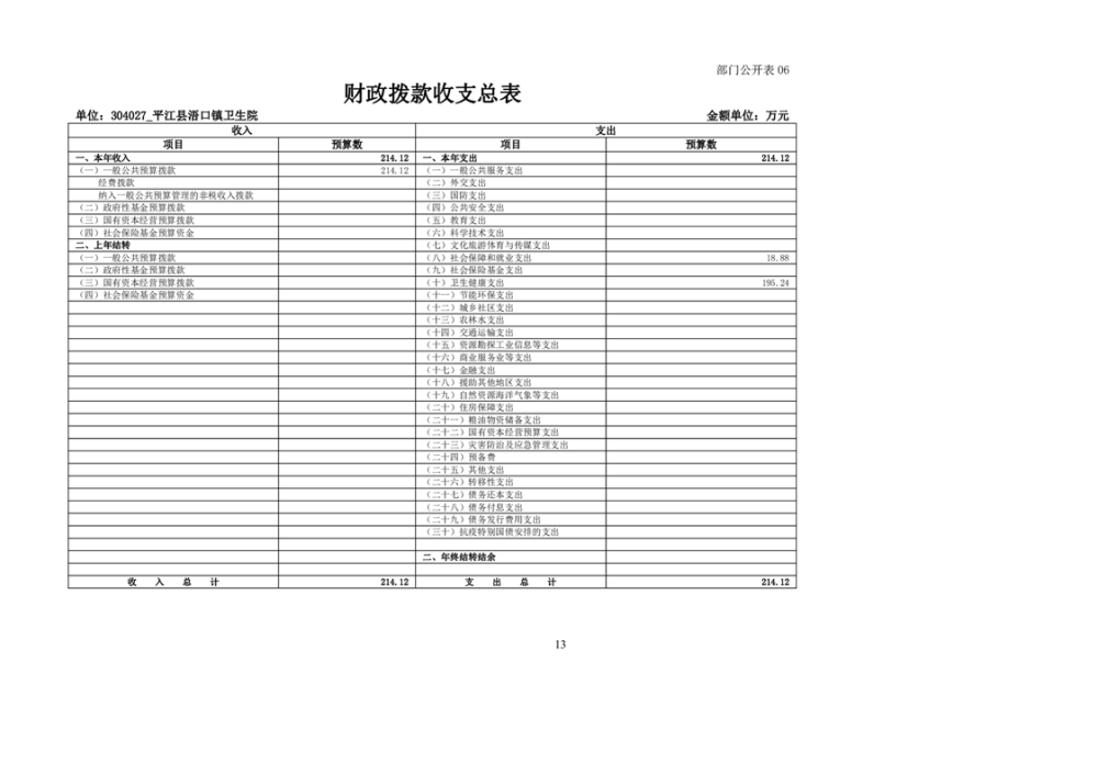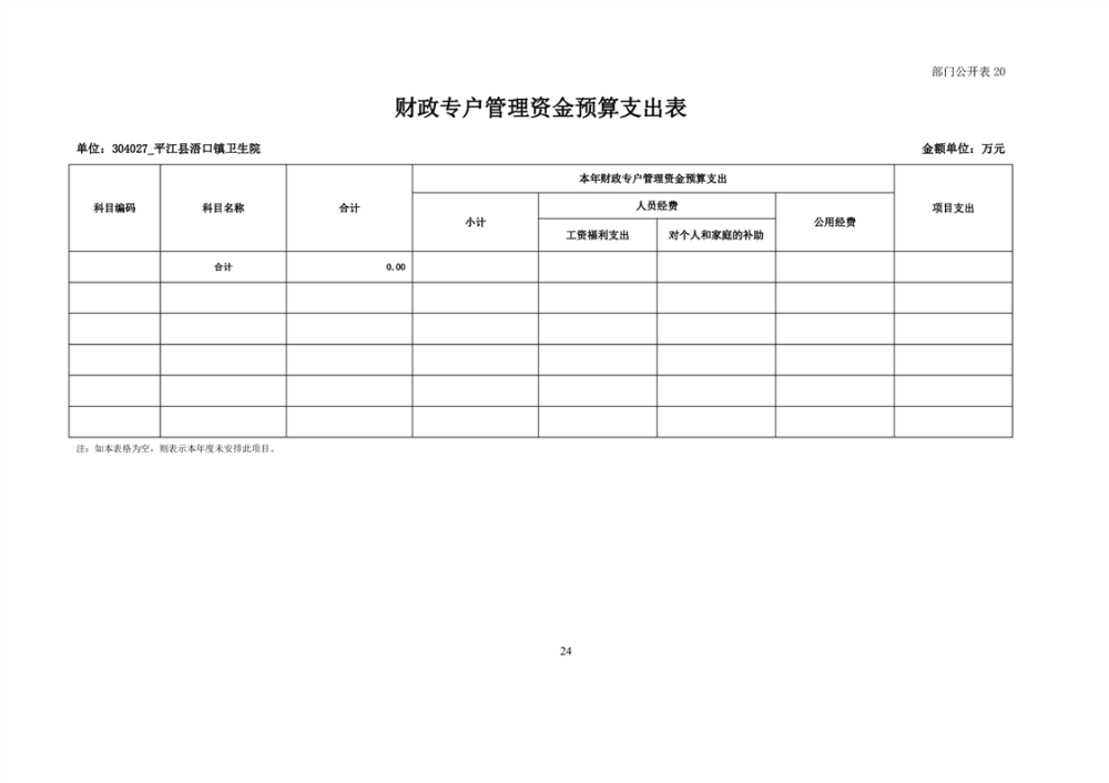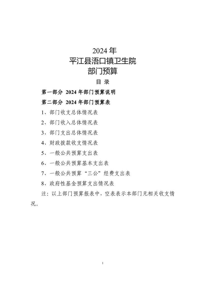 浯口卫生院2024年度部门预算公开