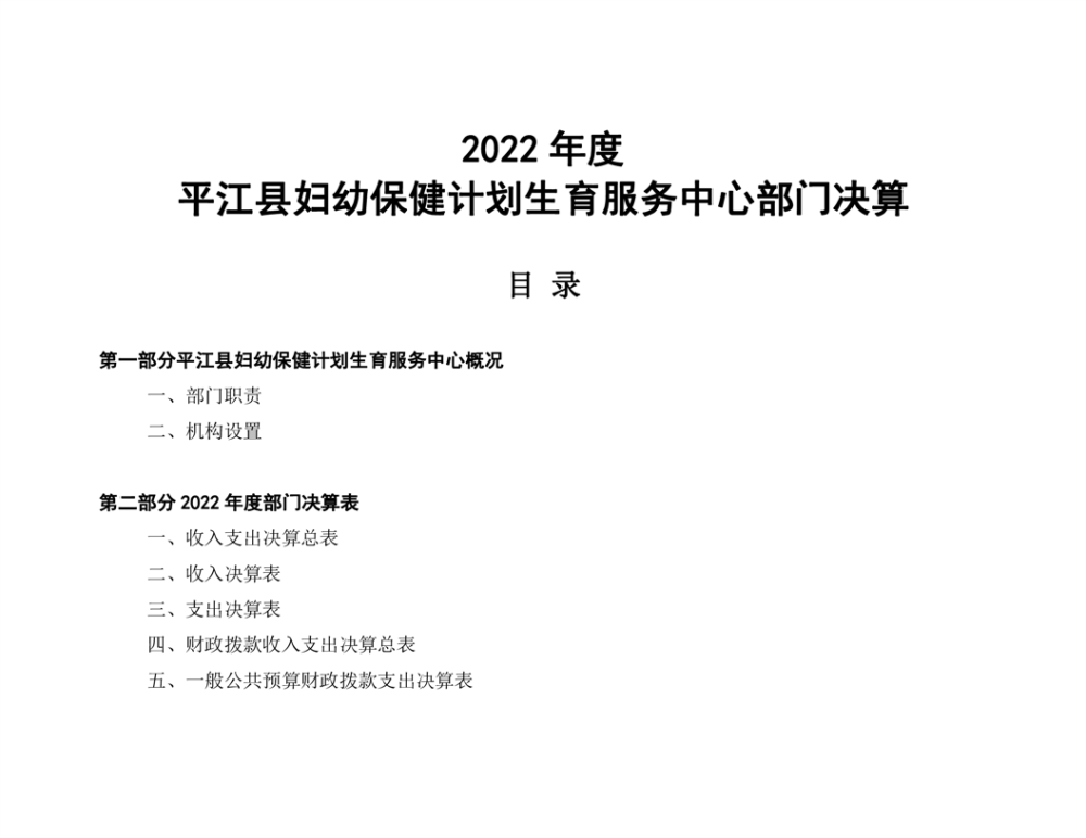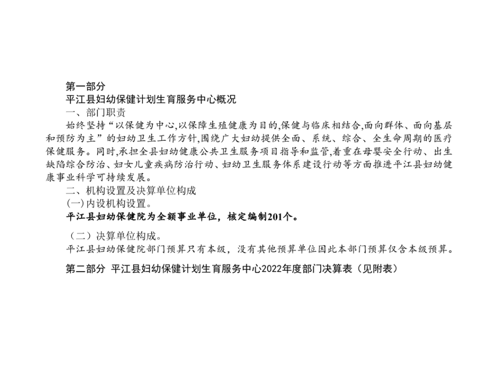 平江县妇幼保健院2022年度部门决算公开