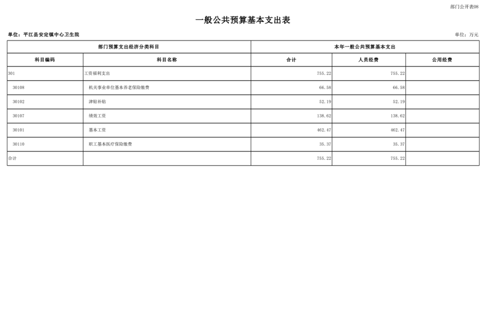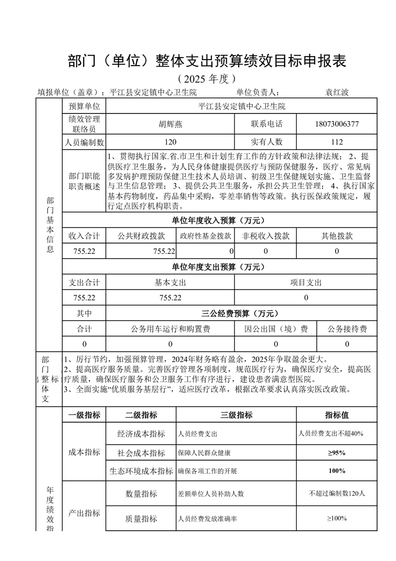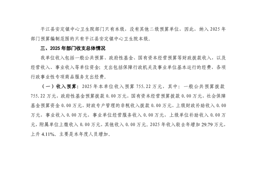 安定卫生院2025年部门预算公开说明