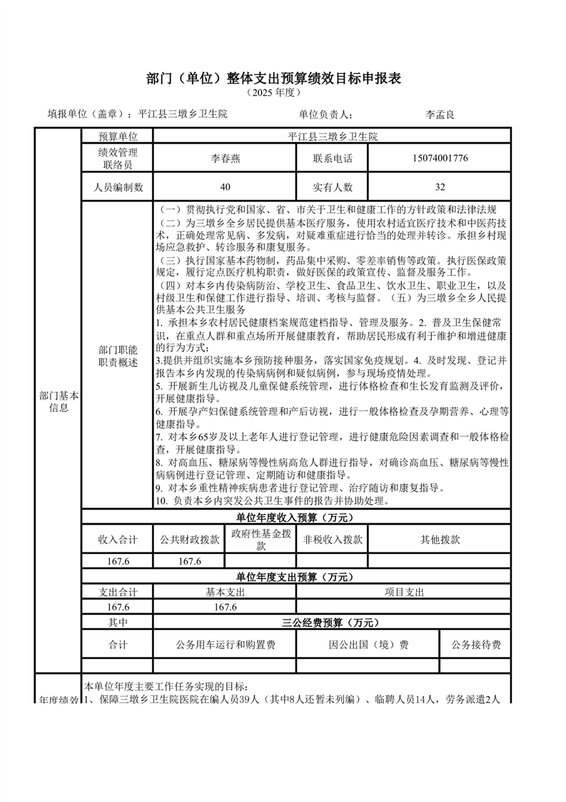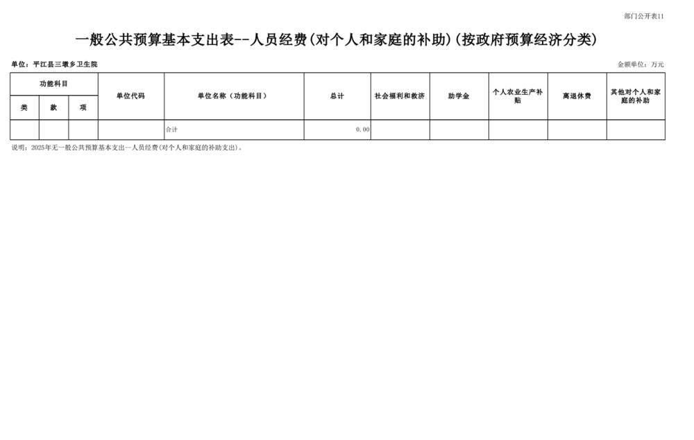 三墩卫生院2025年部门预算公开说明