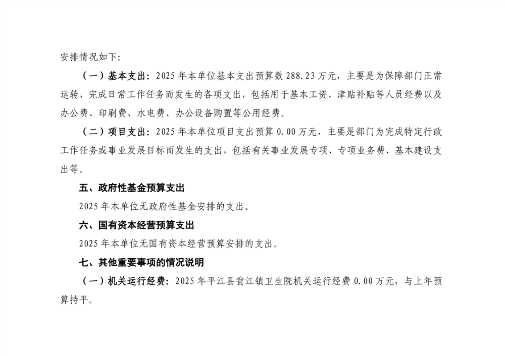 瓮江镇卫生院2025年部门预算公开说明