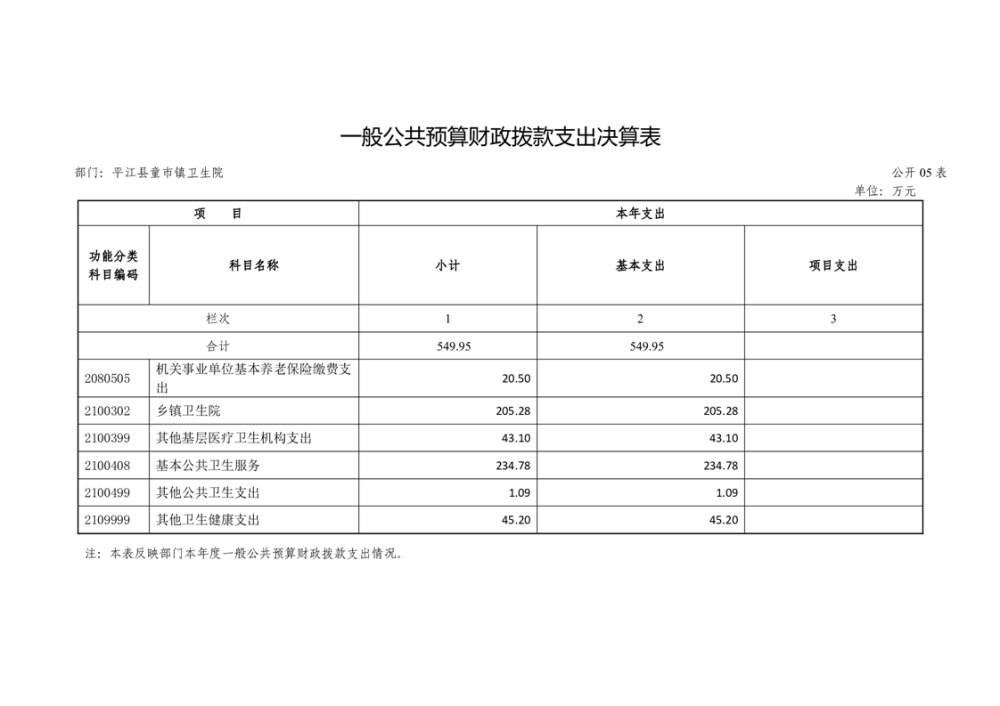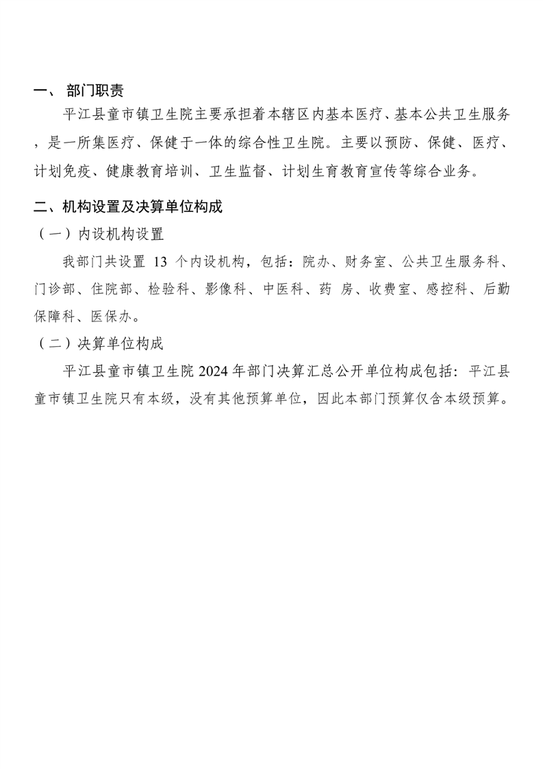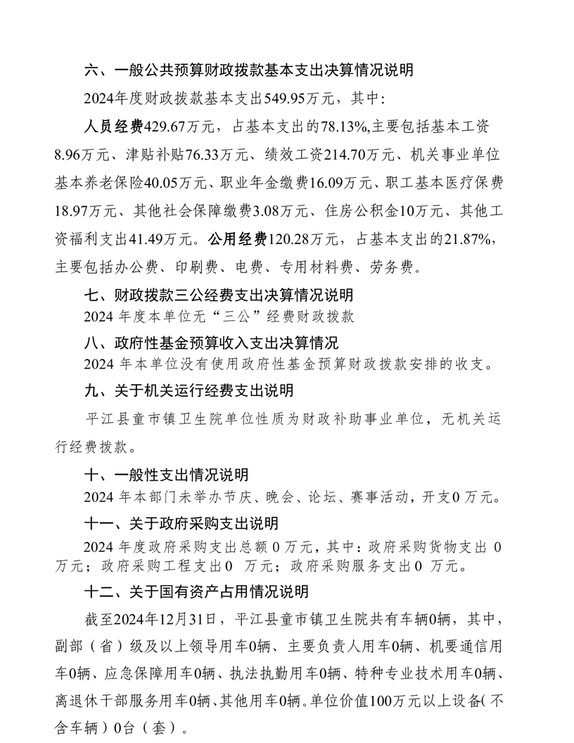 童市镇卫生院2024年度部门决算公开
